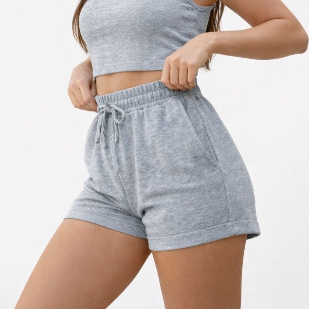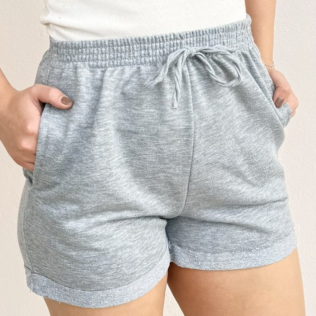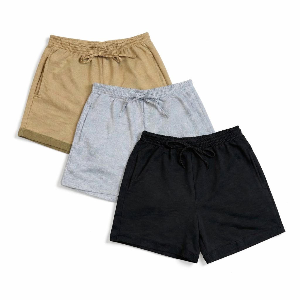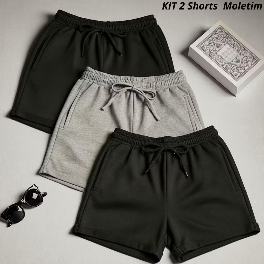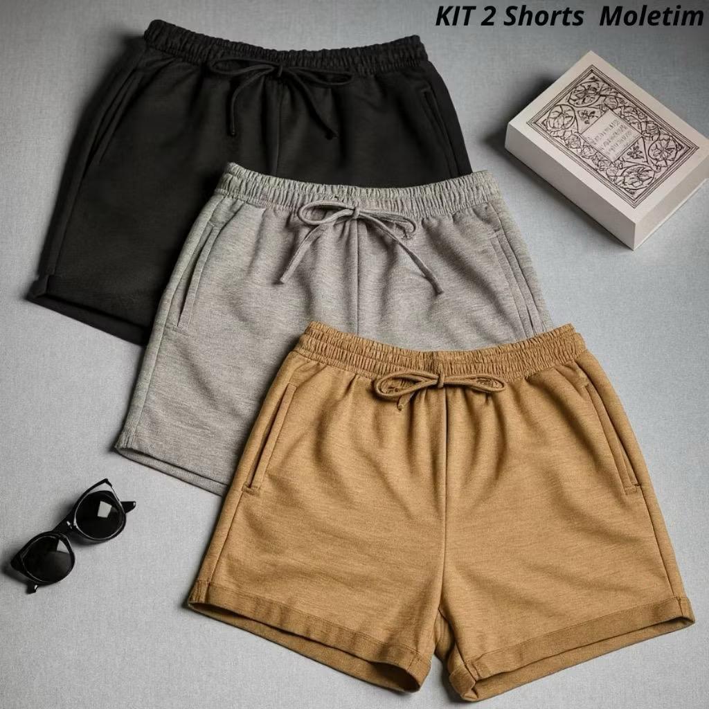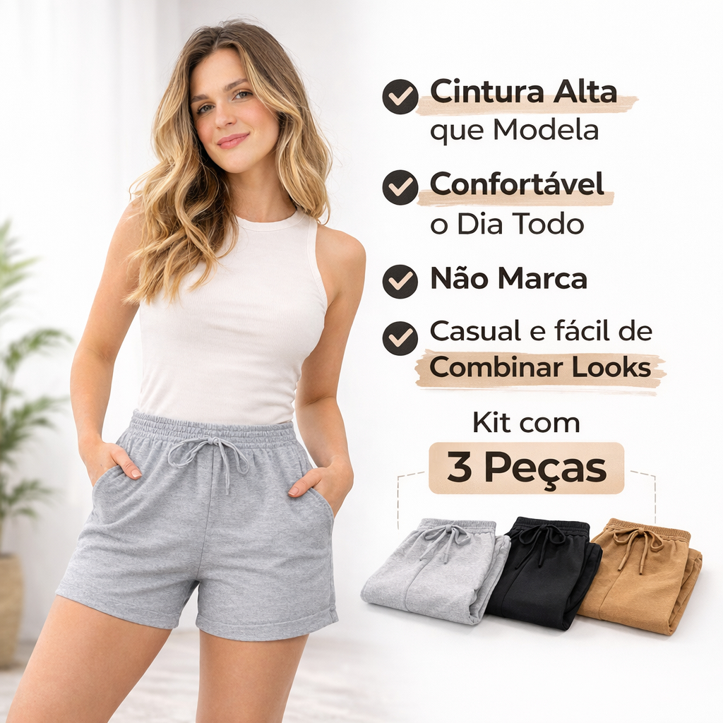 Kit 3 Shorts Feminino Moletim Cintura Alta Moletom Confortável Bolsos Lateral e Cores Tendência
