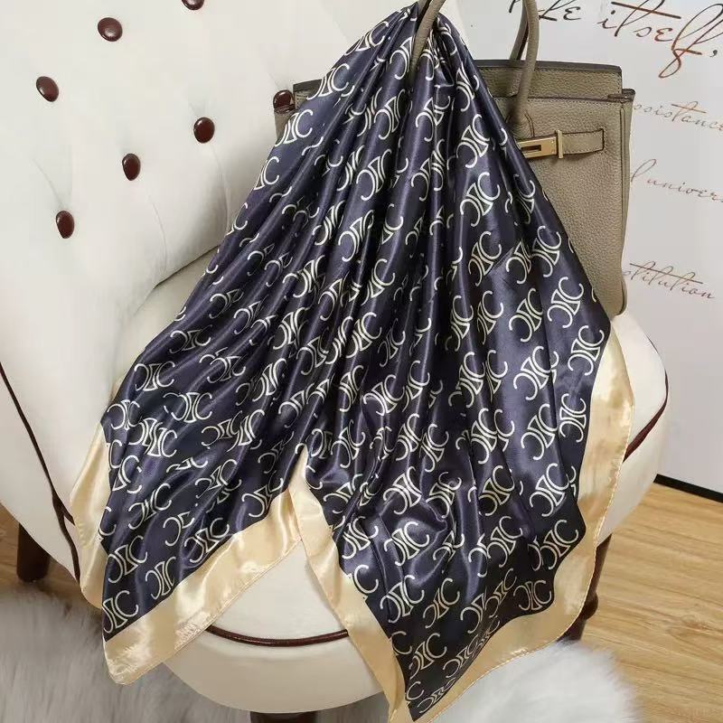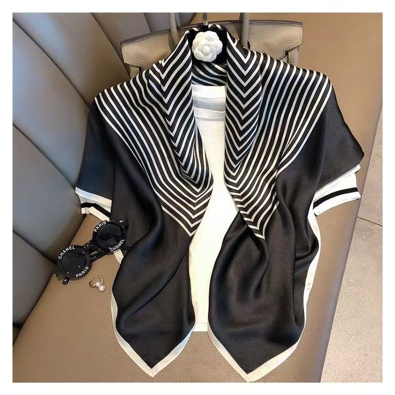 Lenço de seda listrado, 90x90 cm, lenço de seda sarjada, luxuoso e confortável, pode ser usado como xale.