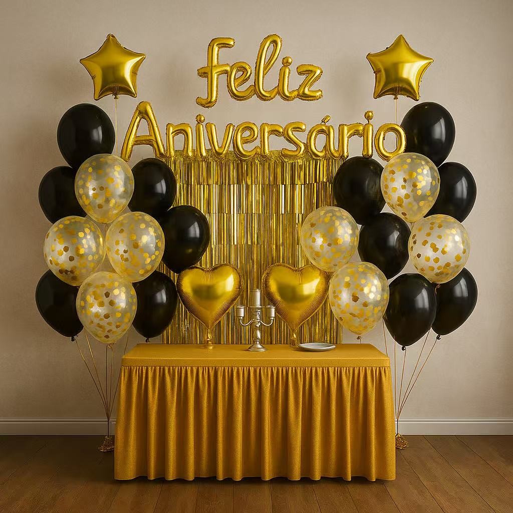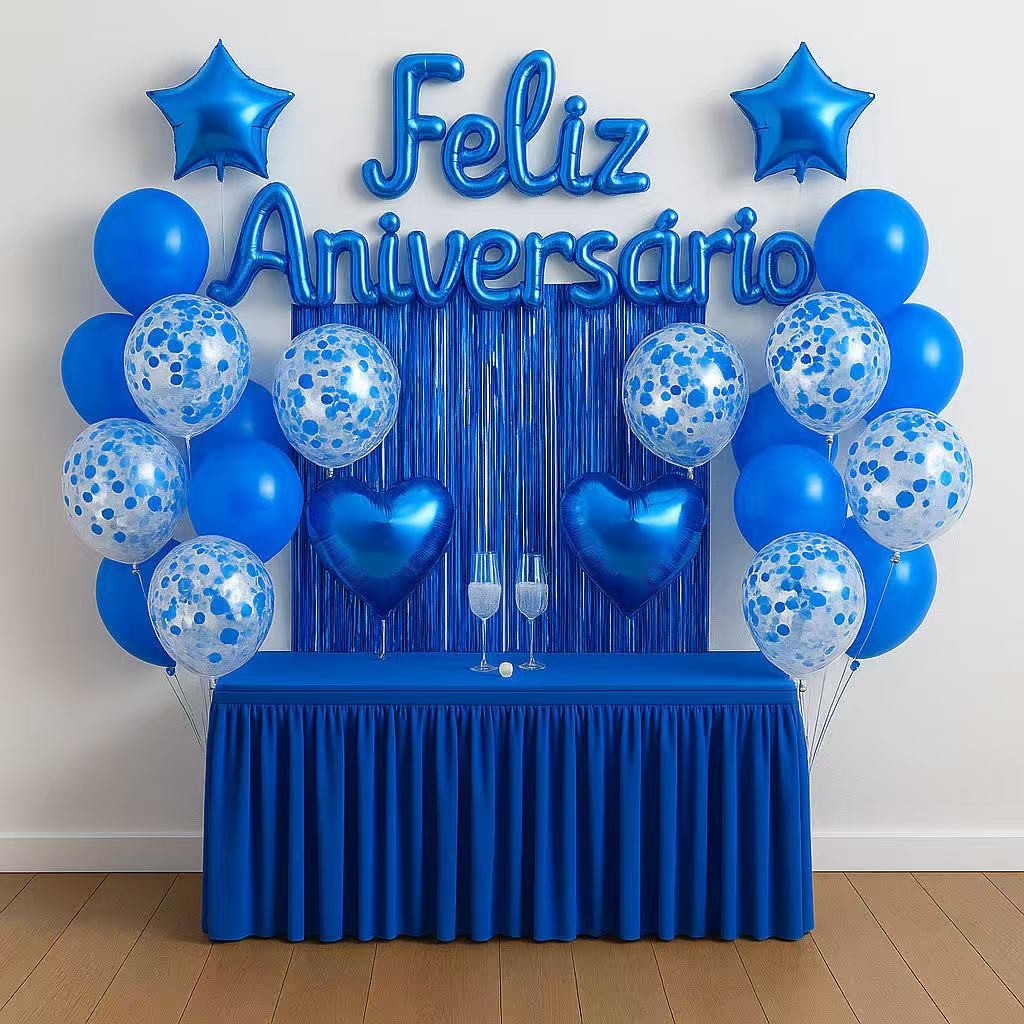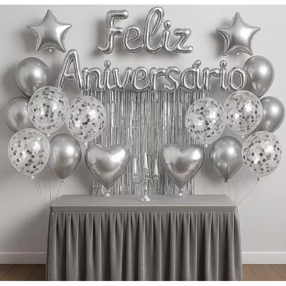 Kit 26 Pcs Balão Feliz Aniversario Cortinas Bexigas Festa Decoração Enfeite