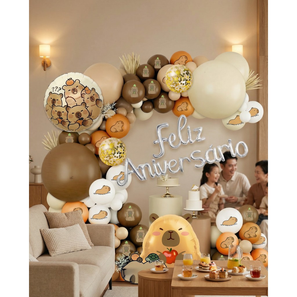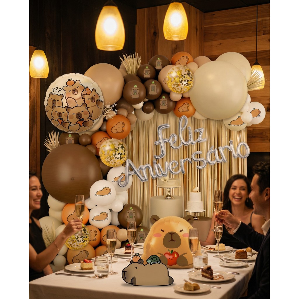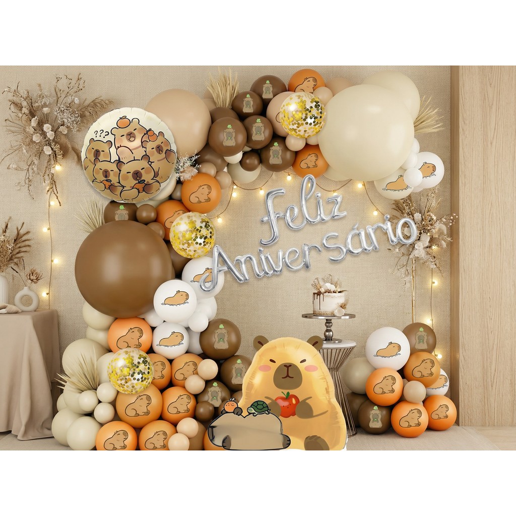 Kit Completa Balões CAPIVARA Metalizado Bexiga Feliz Aniversário Decoração de Festa