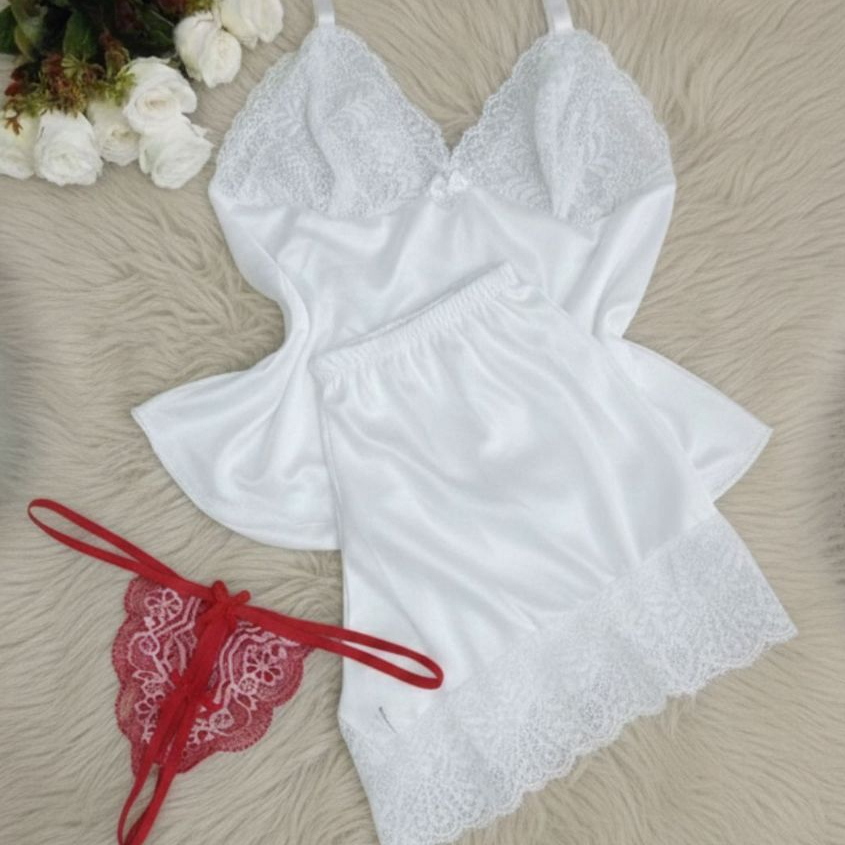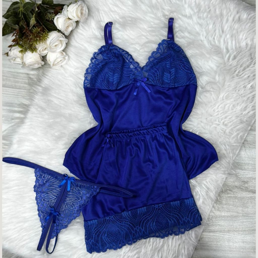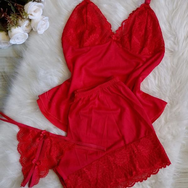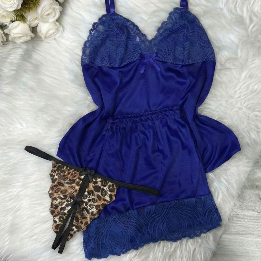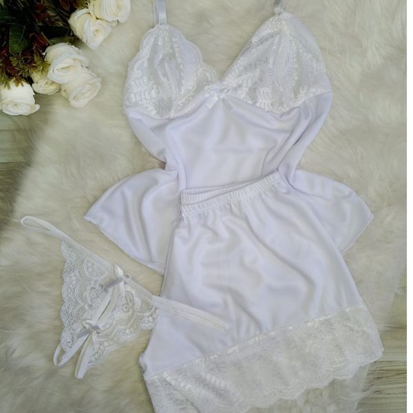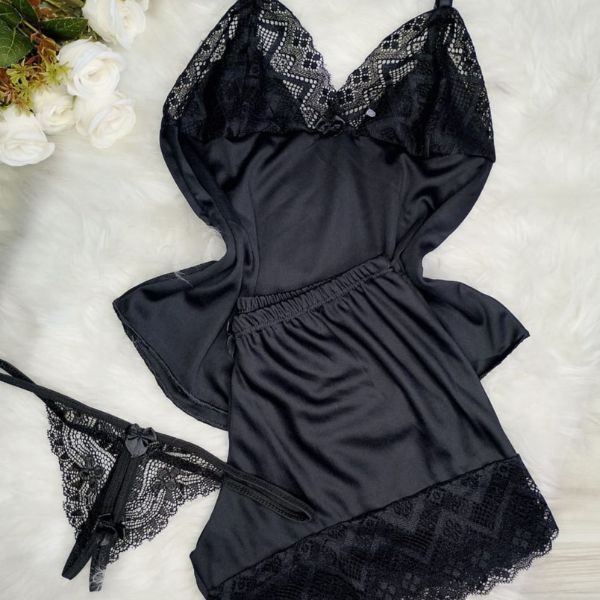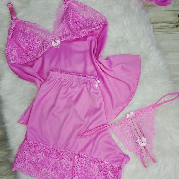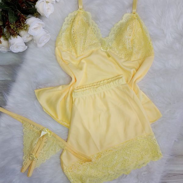 KIT 1 Baby-doll sexy sem bojo e 1 Calcinha Apressadinha Fio Sexy
