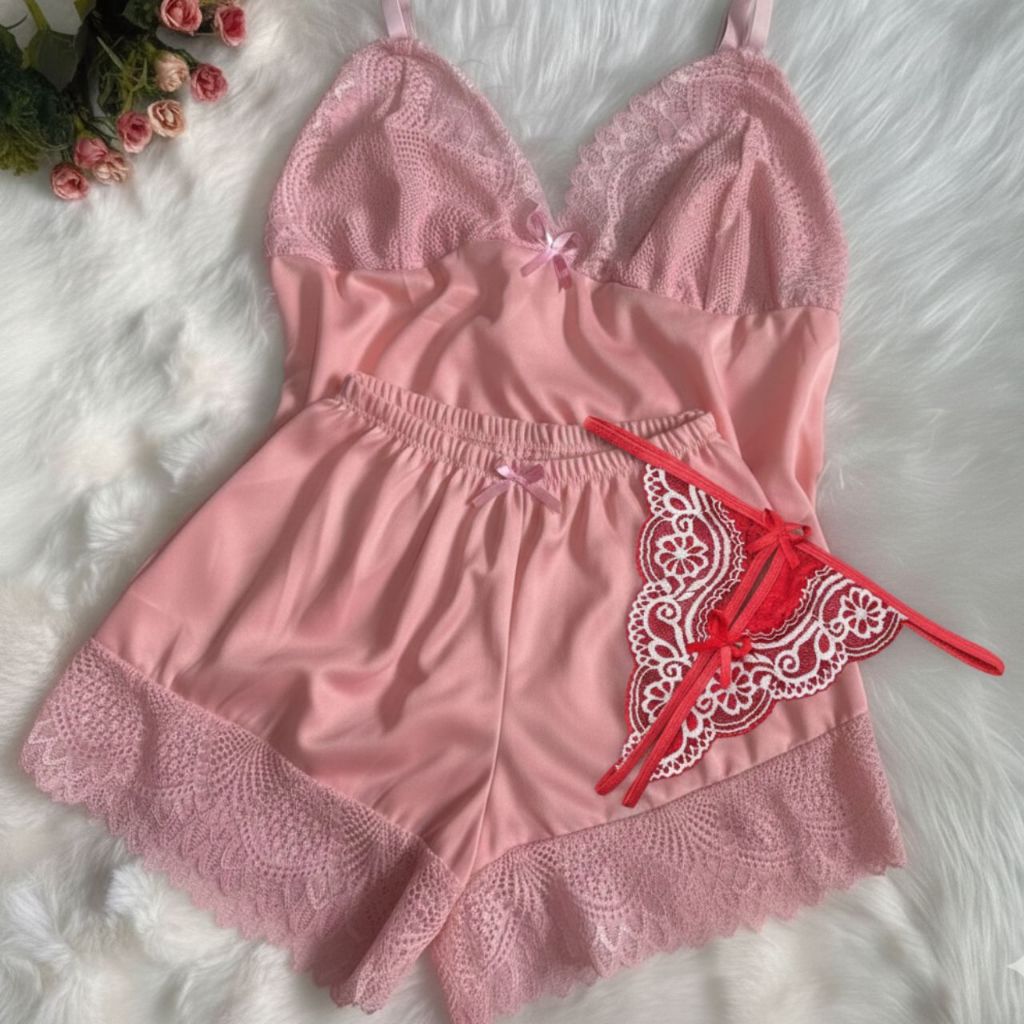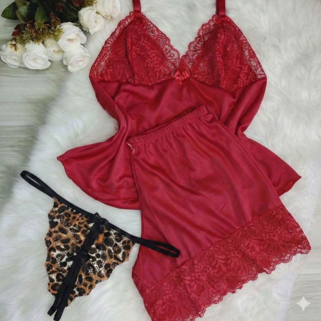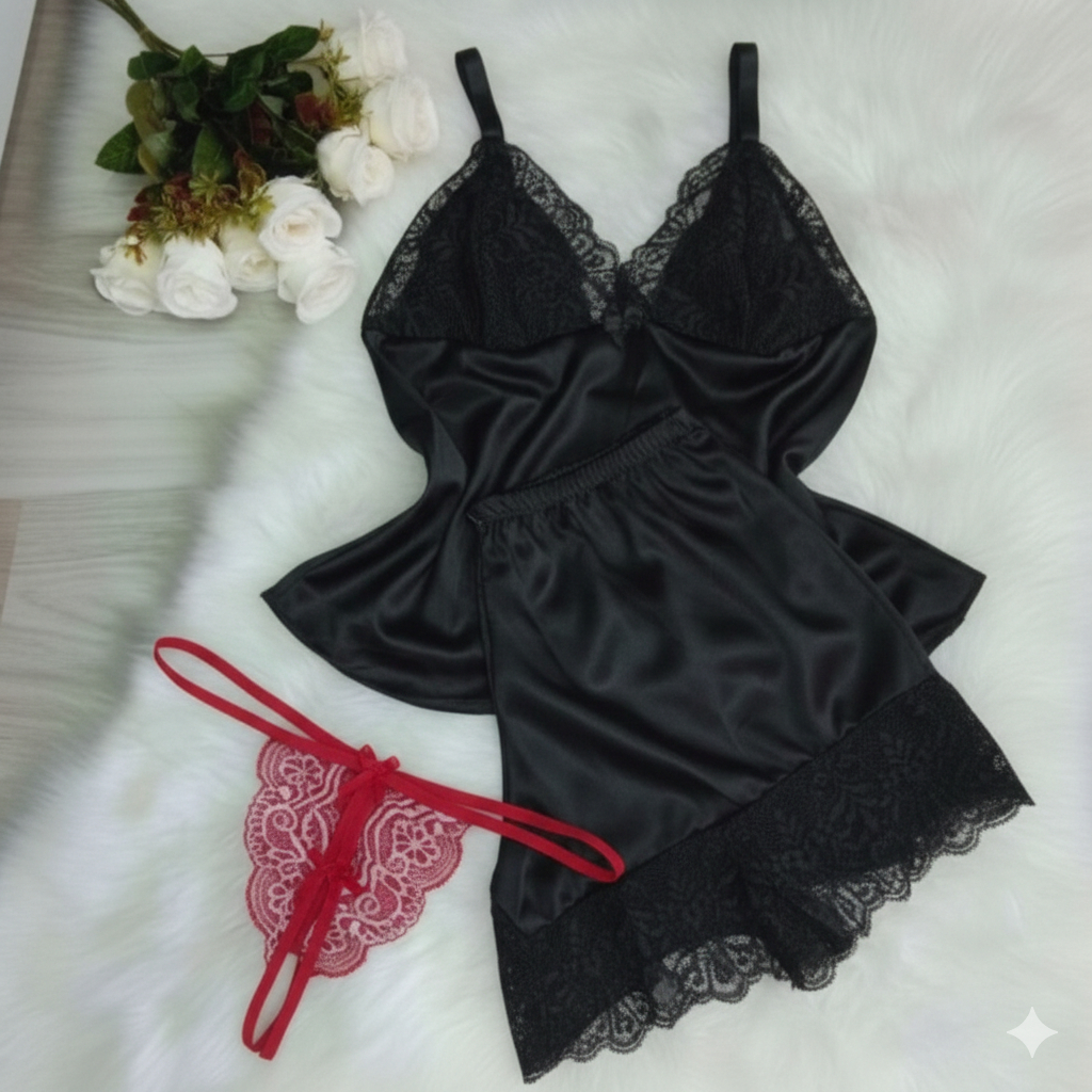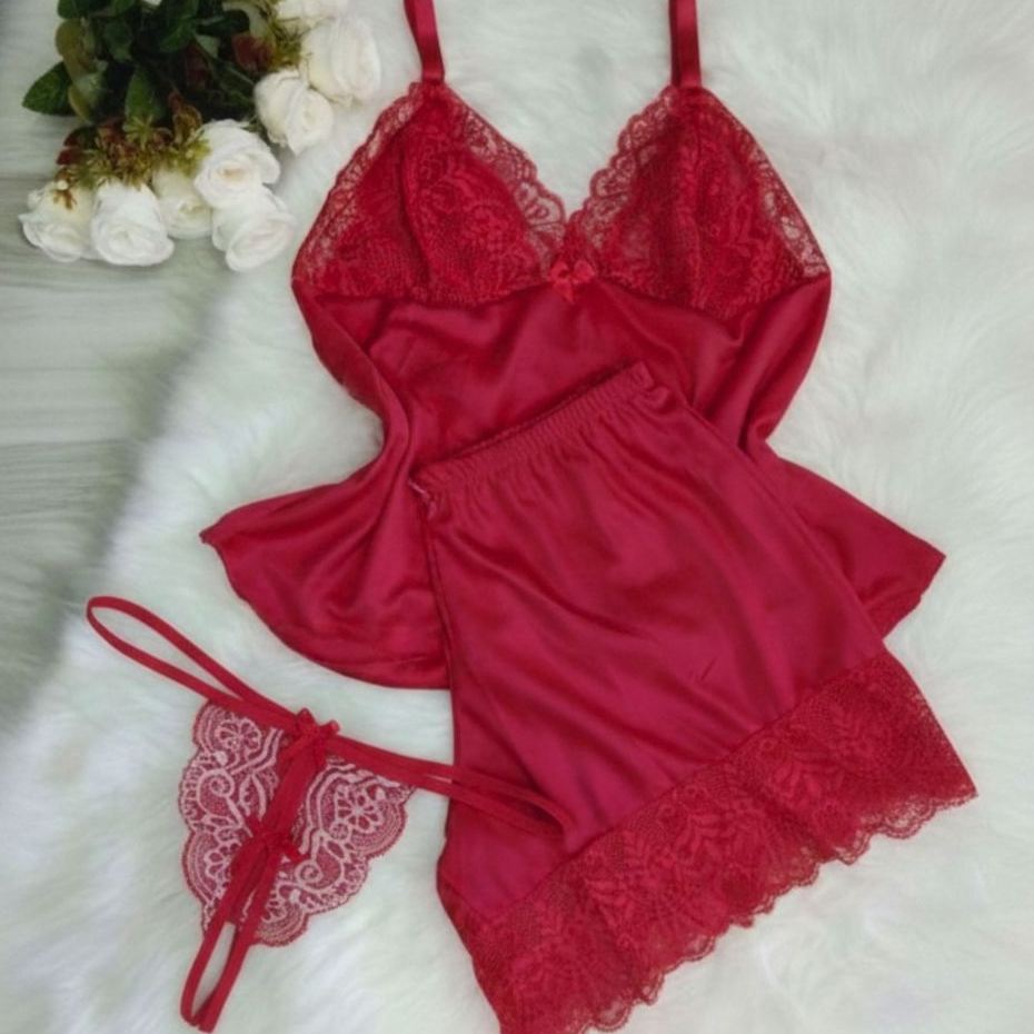 KIT 1 Baby-doll sexy sem bojo e 1 Calcinha Apressadinha Fio Sexy