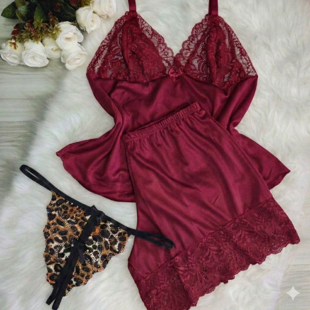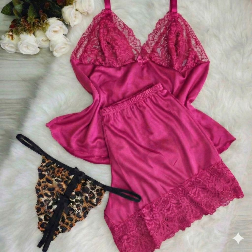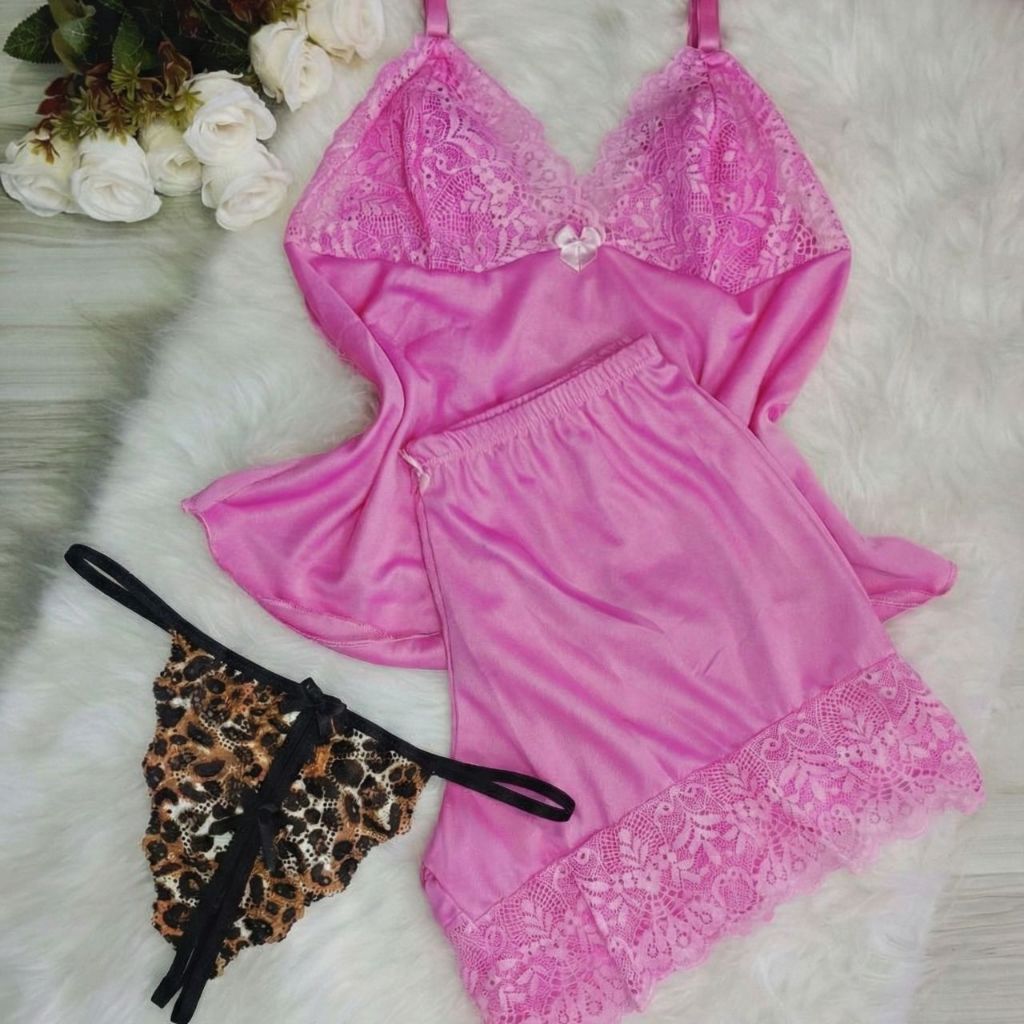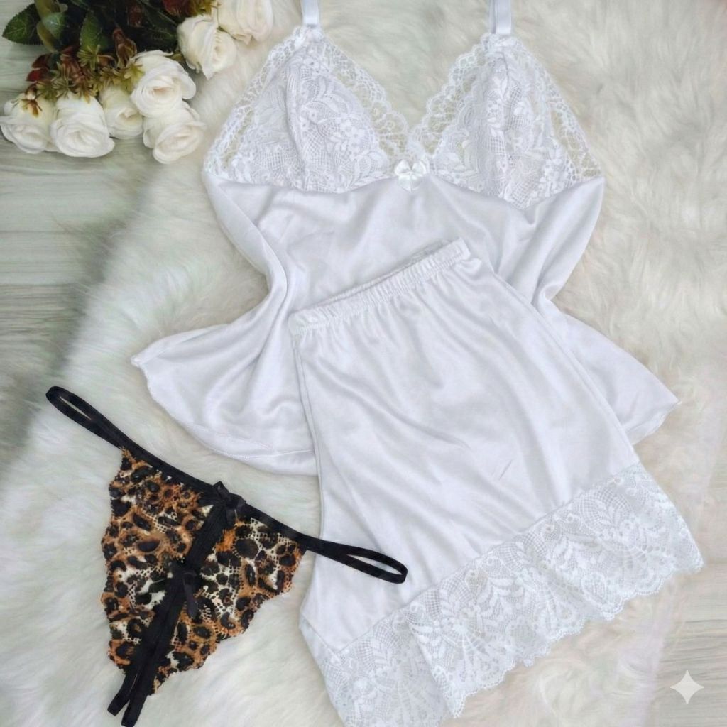 KIT 1 Baby-doll sexy sem bojo e 1 Calcinha Apressadinha Fio Sexy