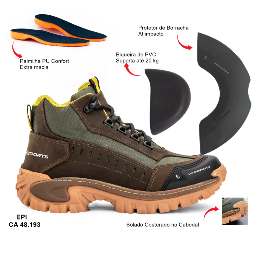 Tênis Adventure Cano Médio Trilha Sertificado Ca Couro Epi