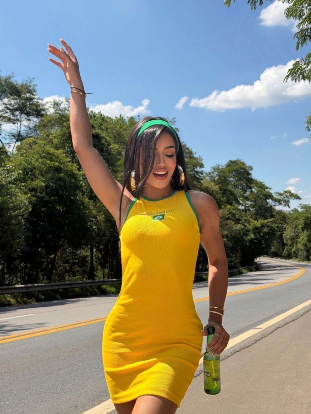 Vestido Feminino Seleção Brasileira Regata Brasil c/Faixa Cabelo Copa do Mundo 2026 Canelado Premium