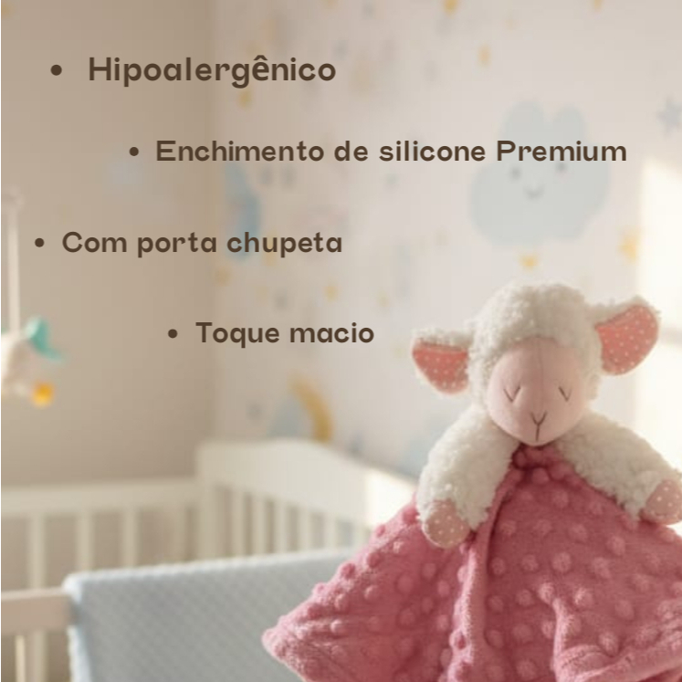 Naninha Premium Ovelha Super Fofinha para Bebê + Prendedor de chupeta – Antialérgica, Macia e Segura