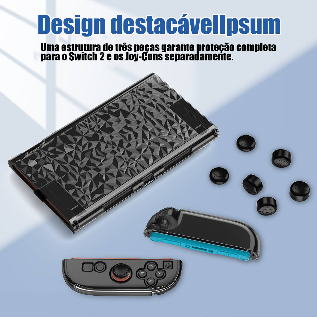 Kit Vidro Temperado Completo para Nintendo Switch 2, Inclui Capa, Grip,Película de Protetor de Tela Anti-riscos e Limpar