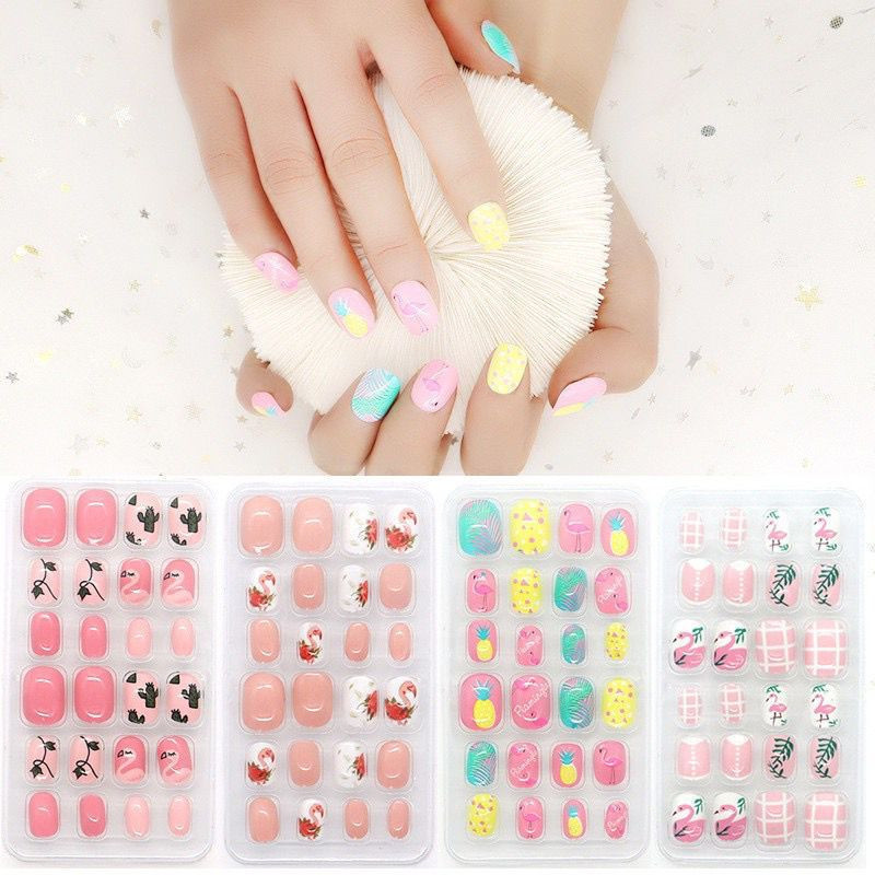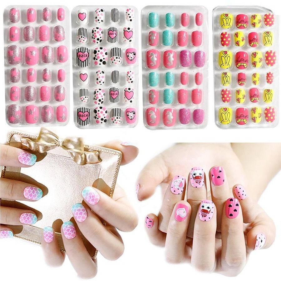 Kit 144 Peças Unhas Postiças Infantis Com Adesivo – Unhas Coloridas Para Meninas/ Festa/ Fantasia e Brincadeira - WJ