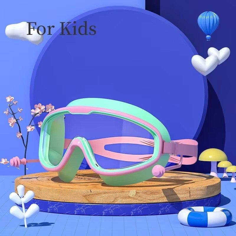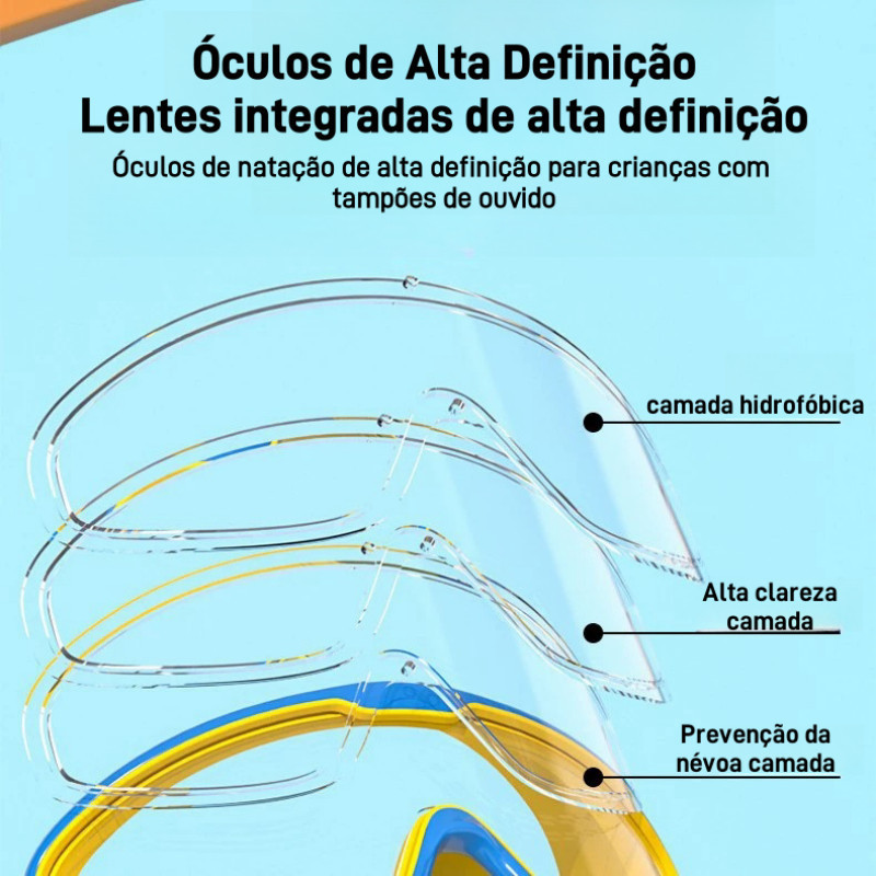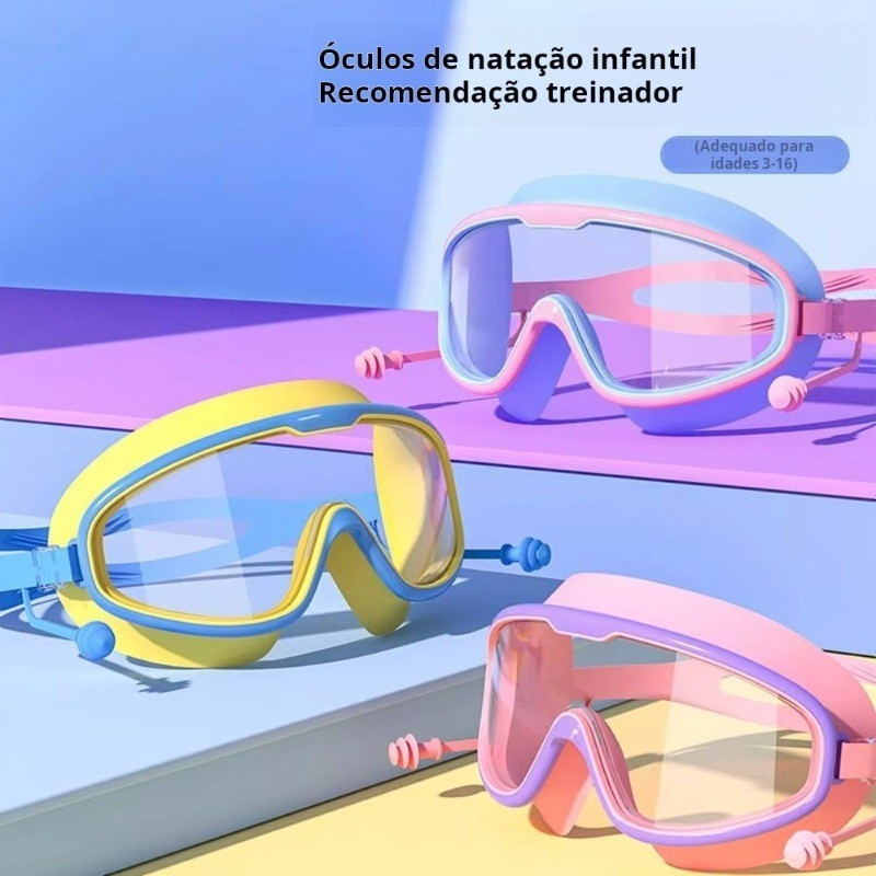 BR- Óculos De Natação Para Crianças Antiembaçante Óculos Natação Infantil Com Protetor Auricular HD Óculos Natação