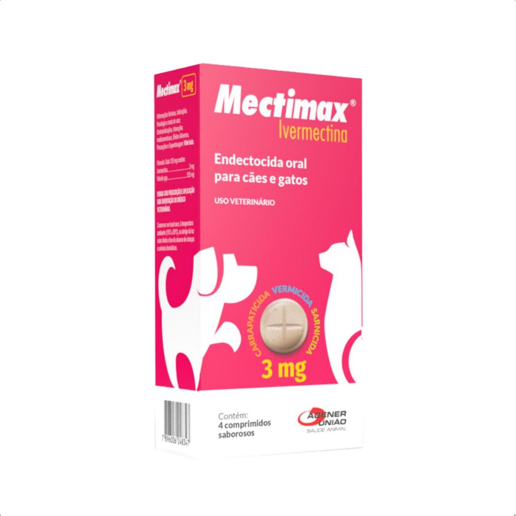 Mectimax 3Mg - Blister com 4 Comprimidos Antiparasitário P/ Cães E Gatos - Agener