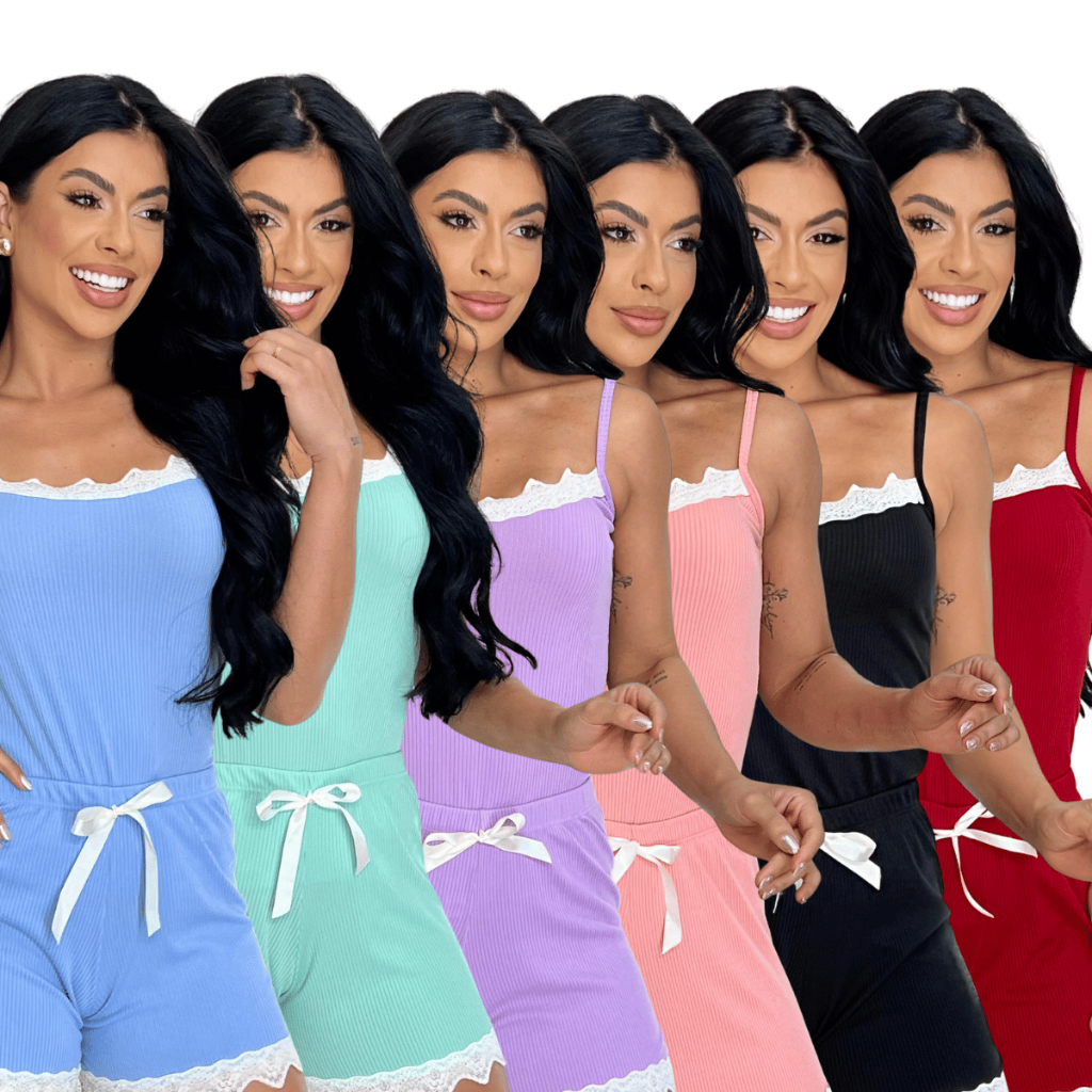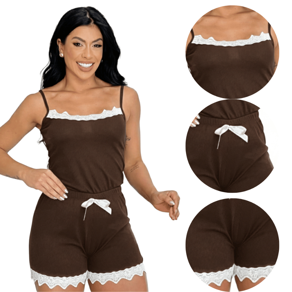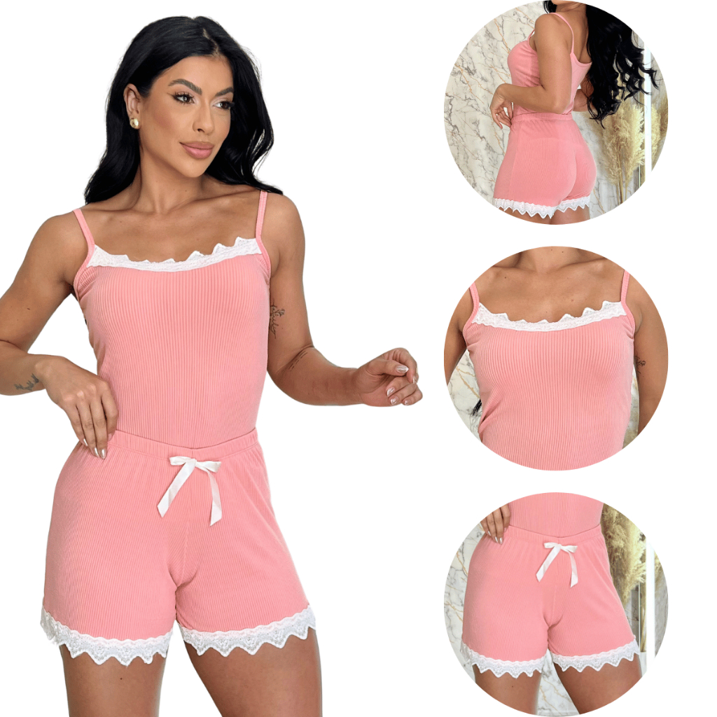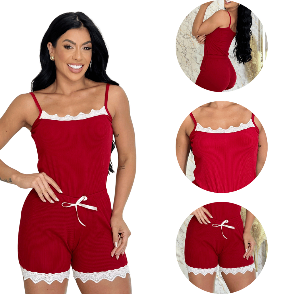 Pijamas Baby Doll Sexy Short Doll Feminino Detalhe de Renda Luxo Premium