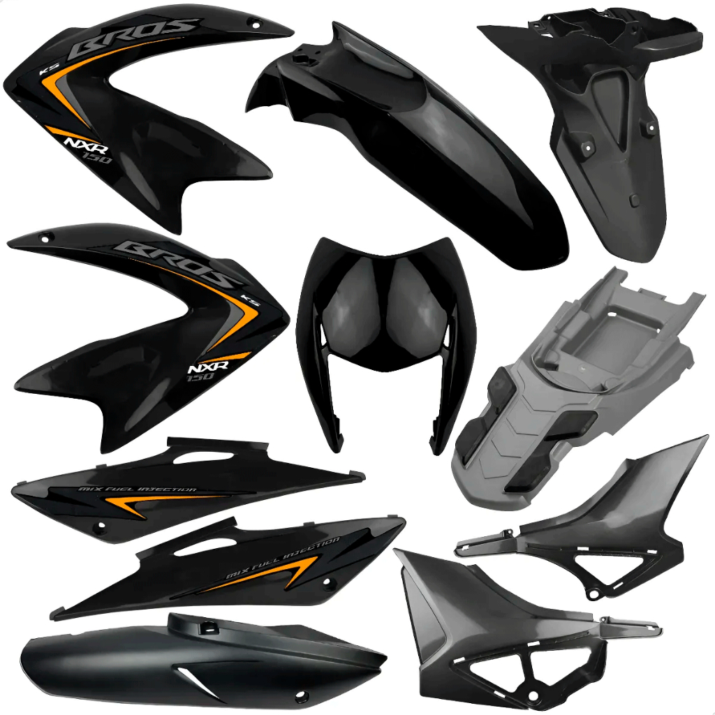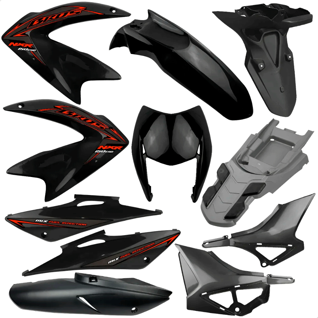 Kit Plásticos NXR 150 Bros 09 10 11 12 es Paralama tra Sup. placa Sub Tampa Protetor de escapamento