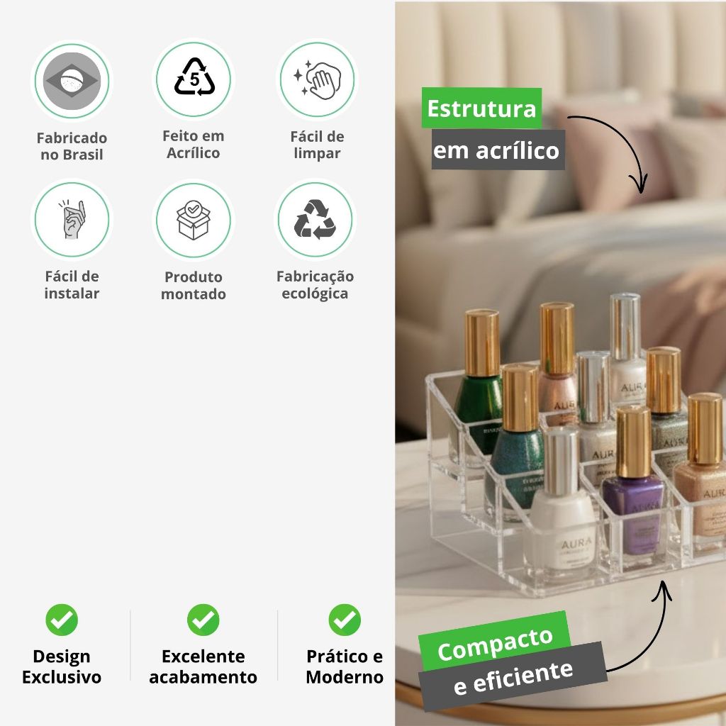 Organizador de Esmaltes em Acrílico – Suporte Multiuso para Cosméticos e Maquiagem