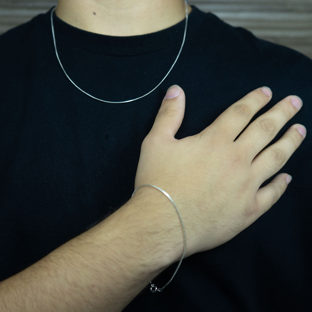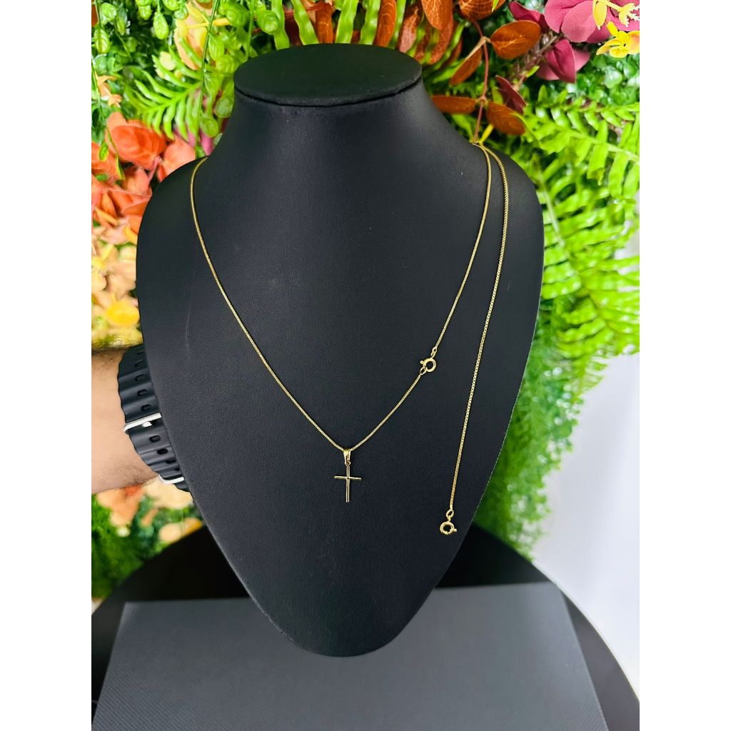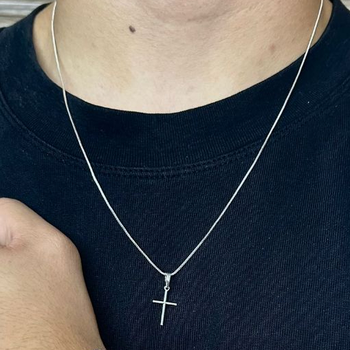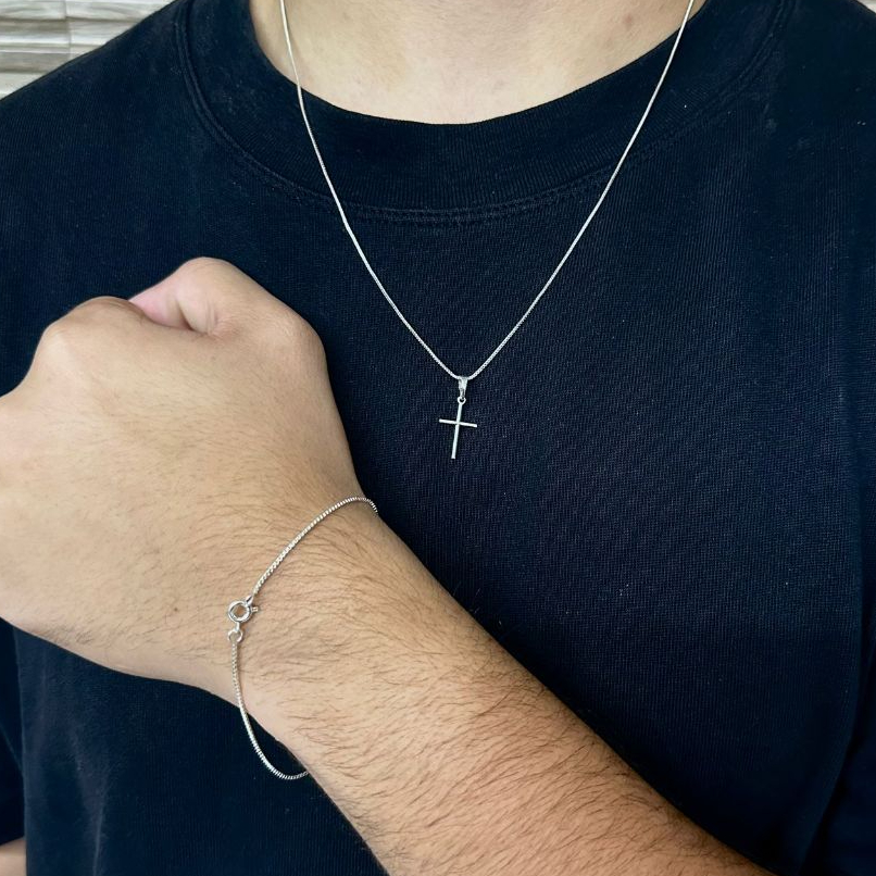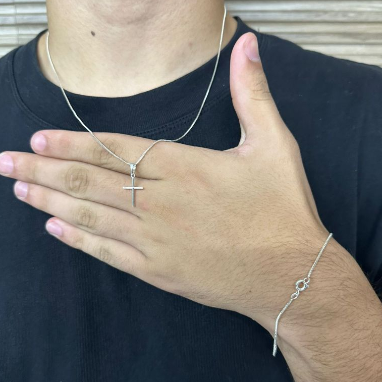 KIT Corrente Colar Masculino 60cm de Prata 925, Ouro 18k + Crucifixo + Pulseira Fina 20, 21 ou 22cm