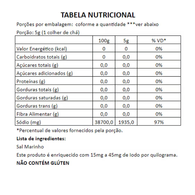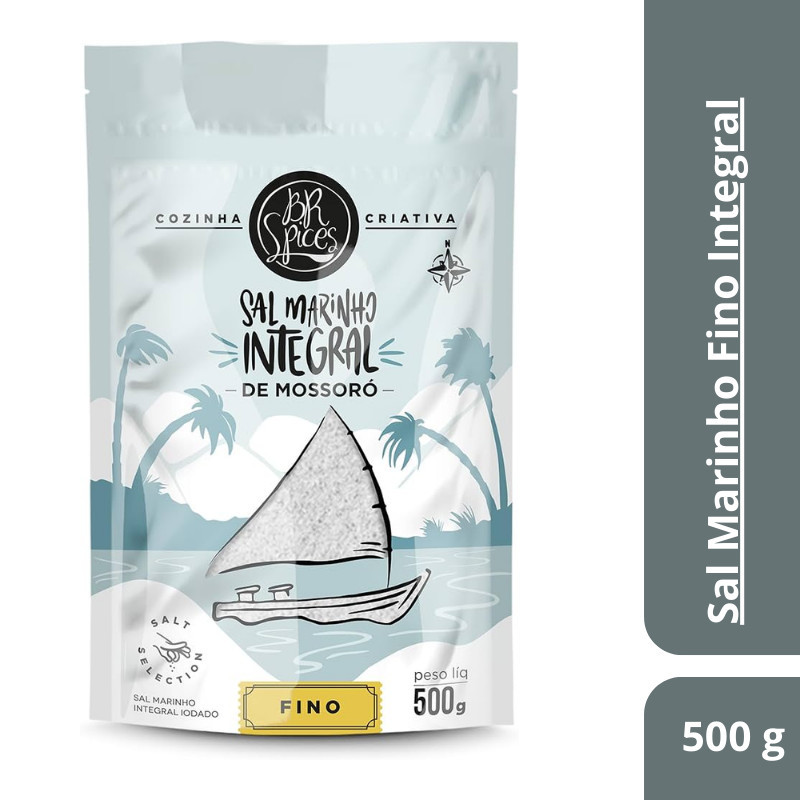 Sal Marinho Integral Fino Mossoró BR Spices 1KG OU 500G Natural Não Refinado Rico em Minerais Pouch