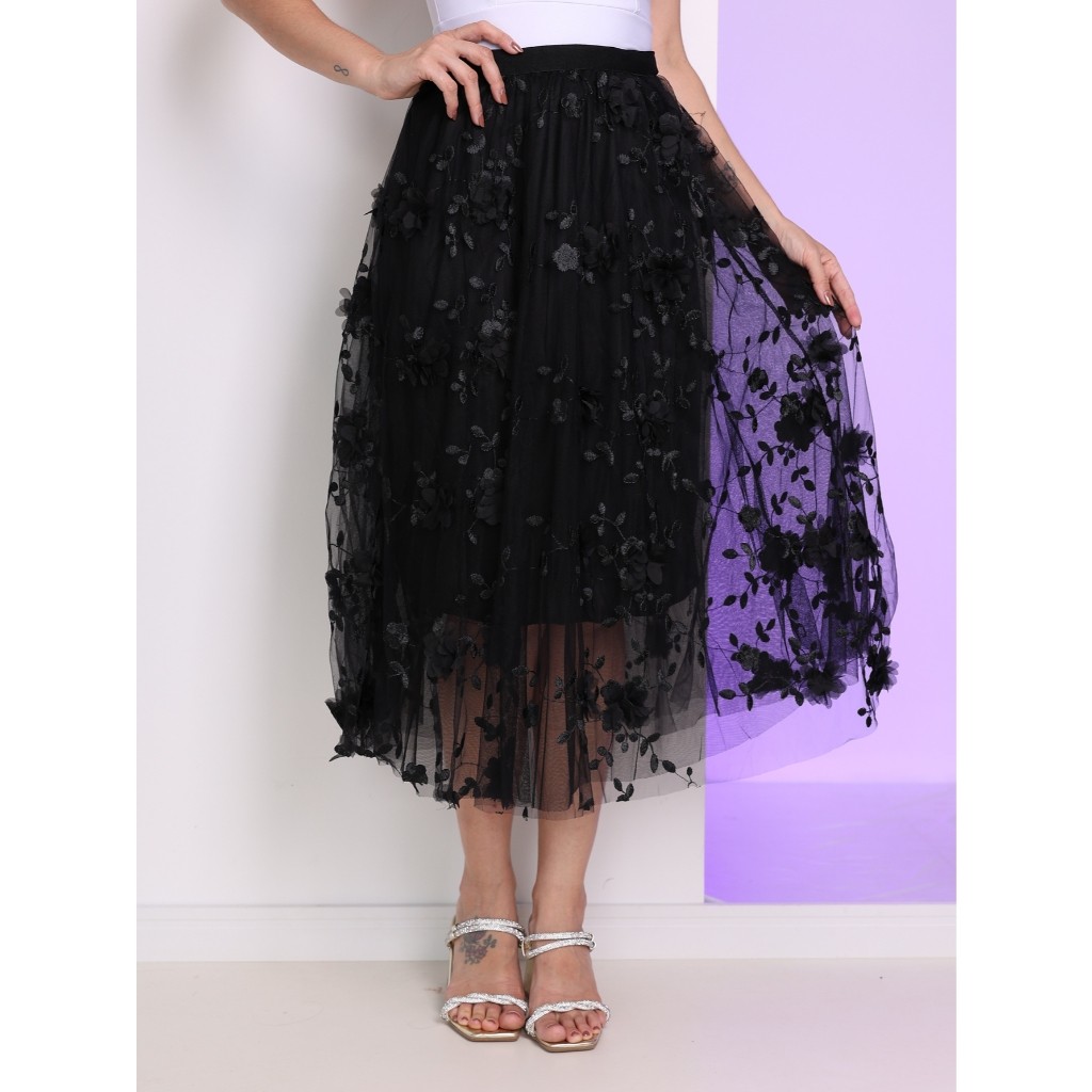 Saia De Tule Com Bordados De Flores Com Melhor Qualidade Do BRASIL Fotos Reais