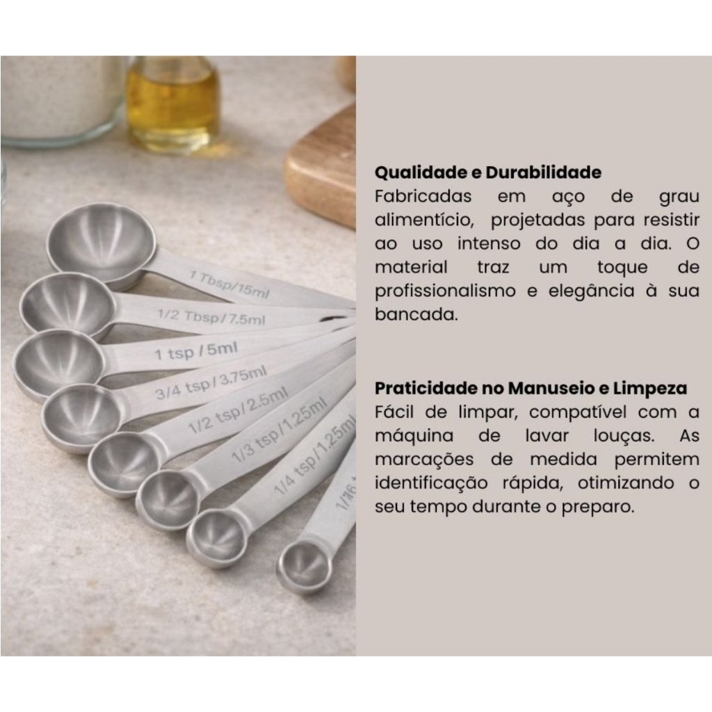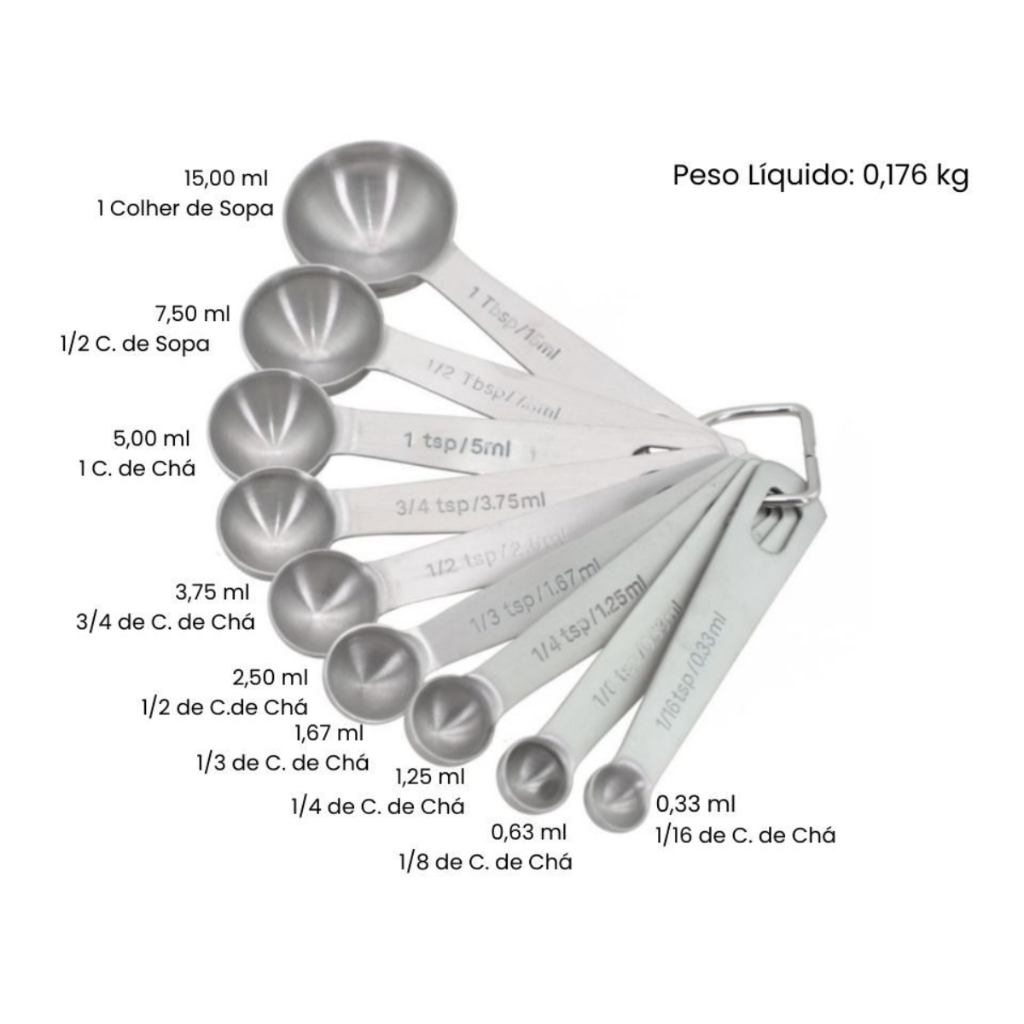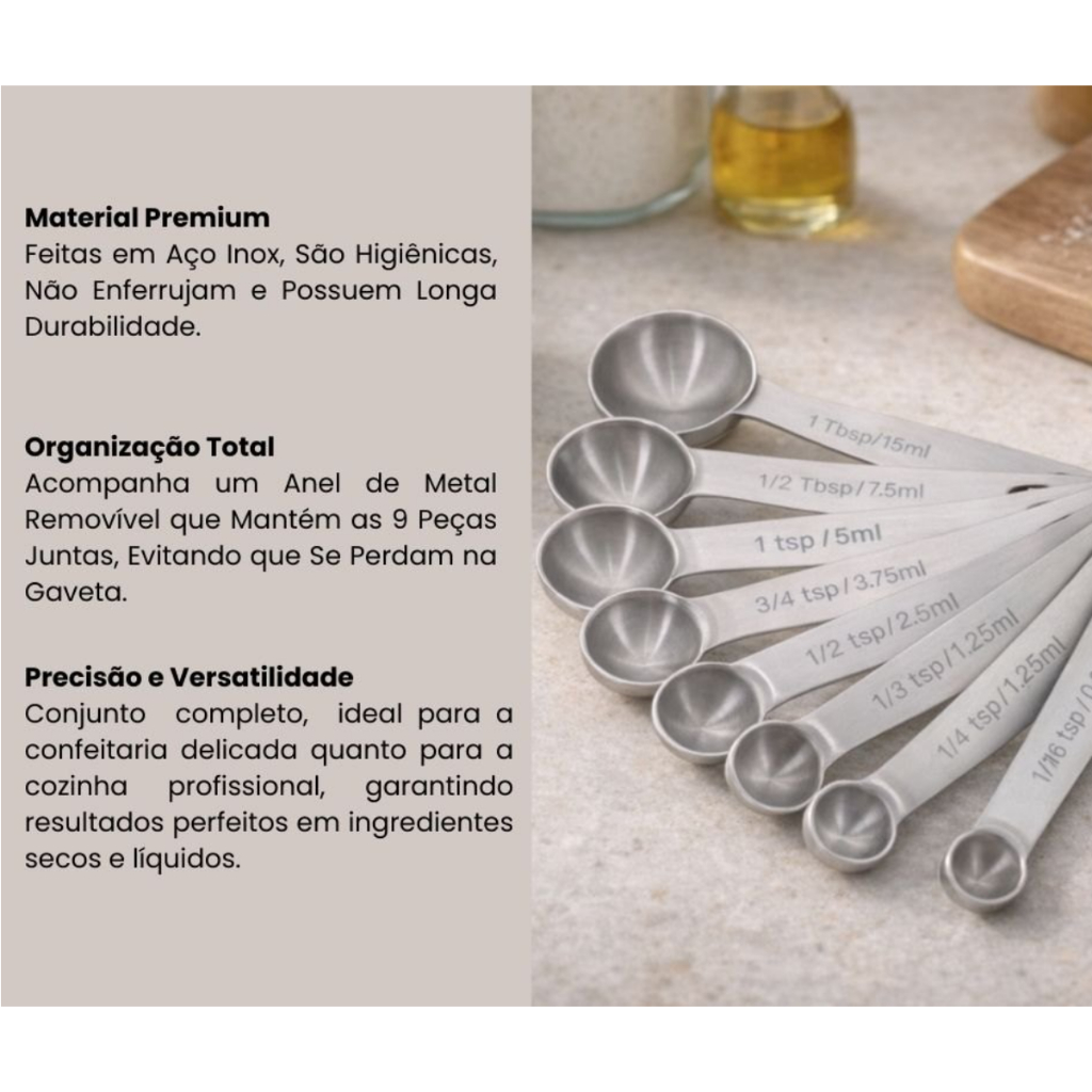Kit 9 Colheres Medidoras de Aço Inox Durável Precisão Total Linha Premium - PROMOÇÃO Lovely Vibe