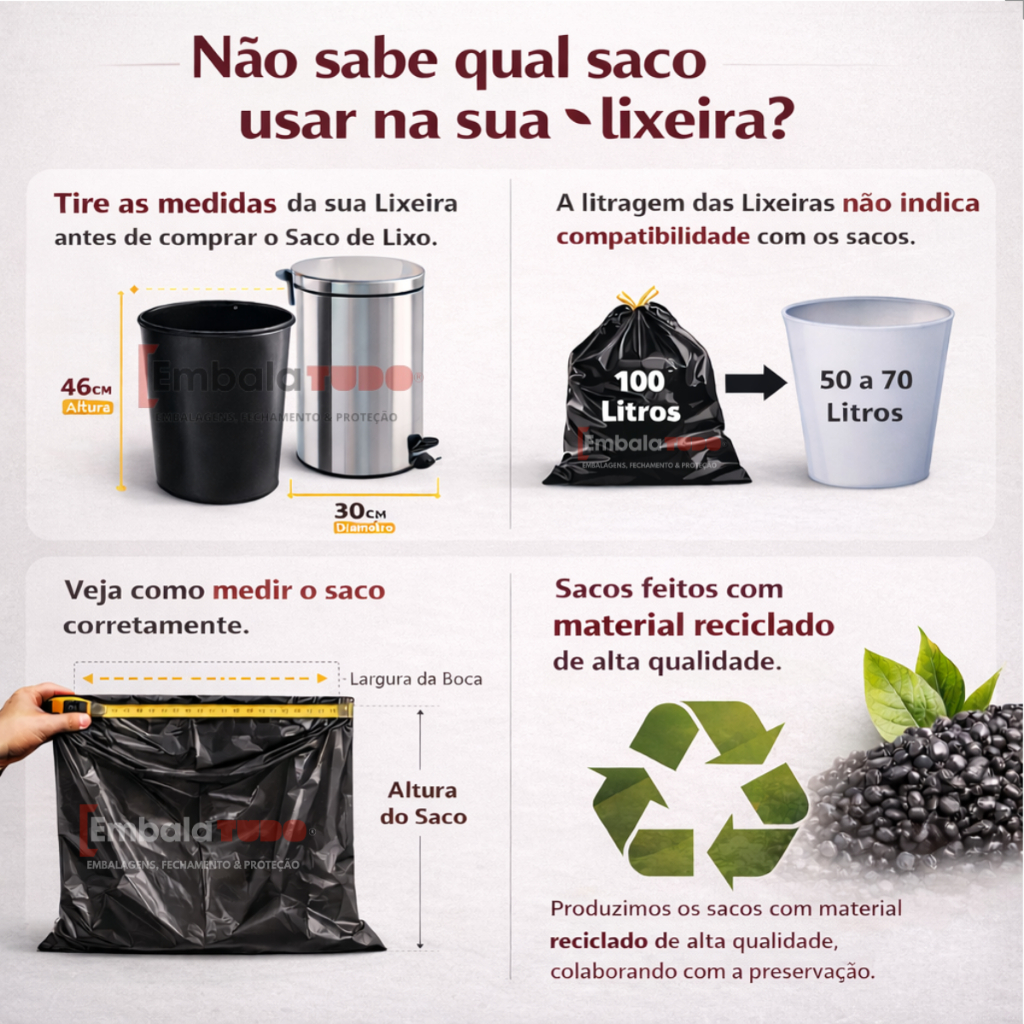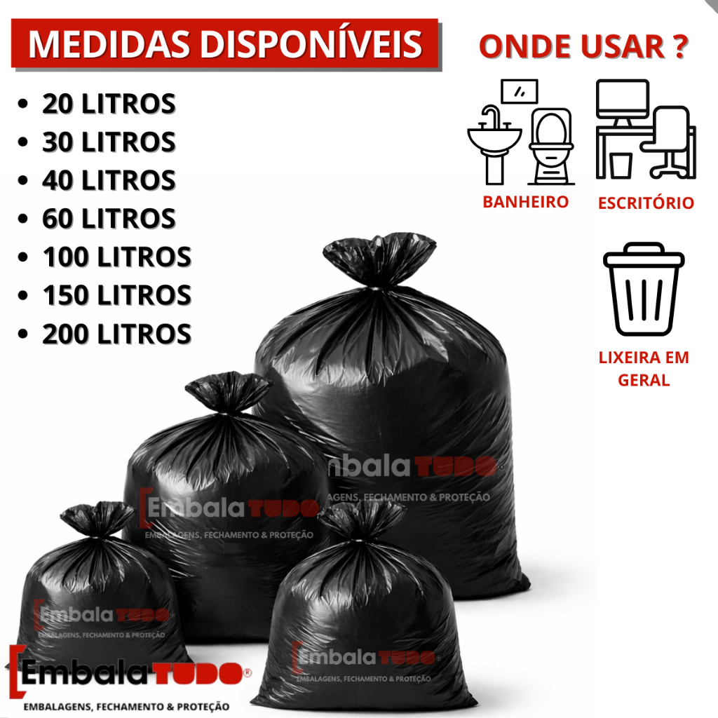 Saco de Lixo 20 Litros Preto com 100 Unidades