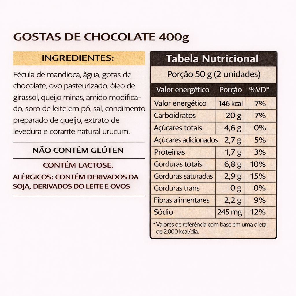 Mineiraço Pão de Queijo Tradicional e Gotas de Chocolates KIT 2 x 400g (800g)
