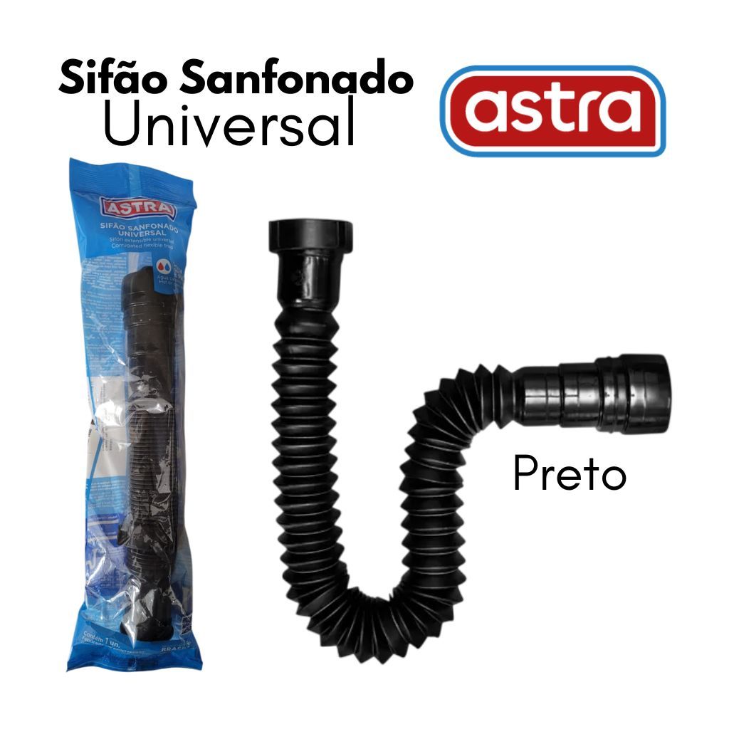 Sifão Sanfonado Universal Preto Cinza Branco Cromado Astra
