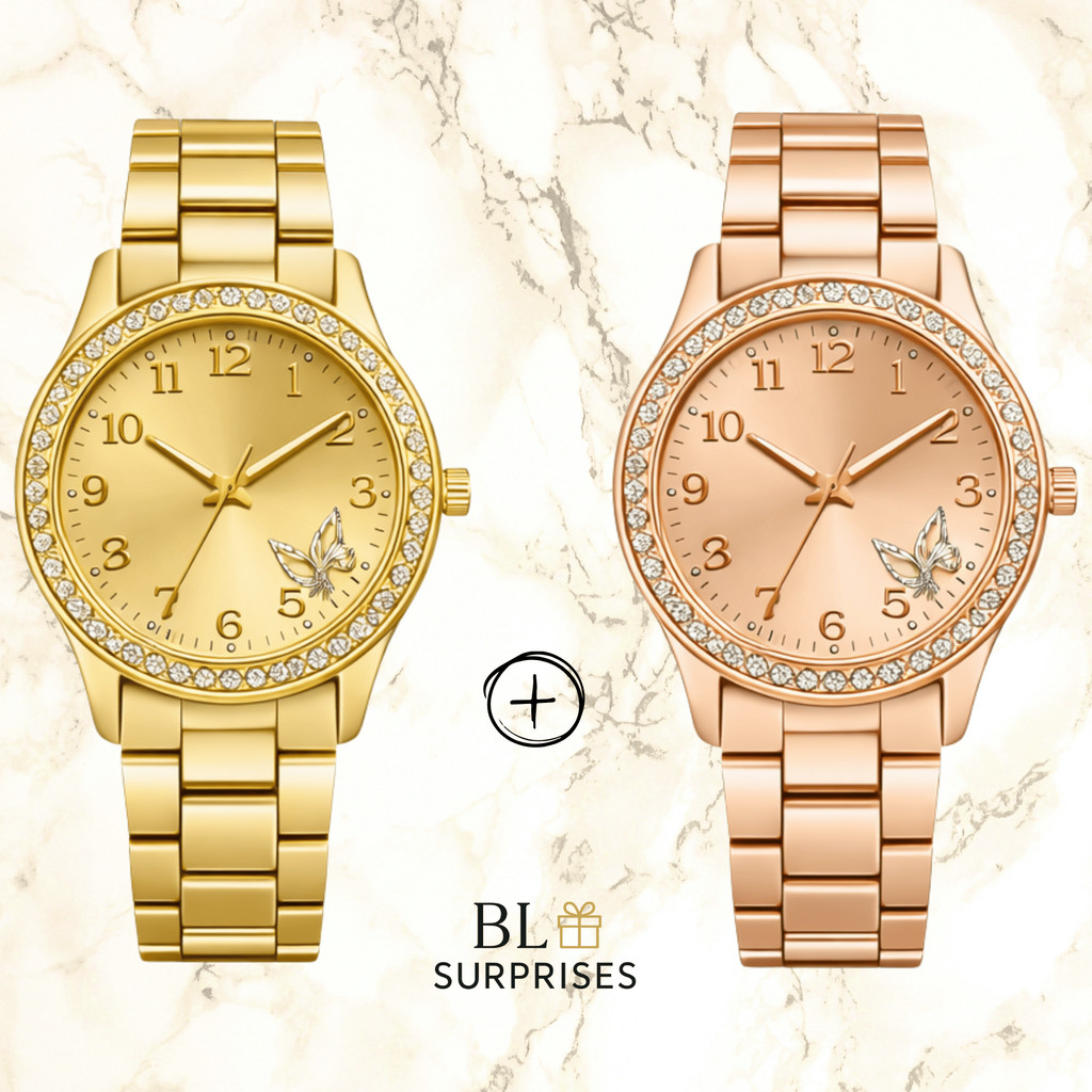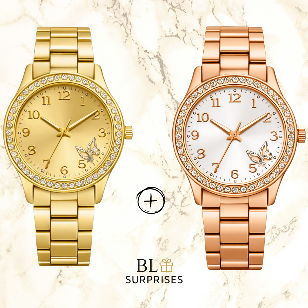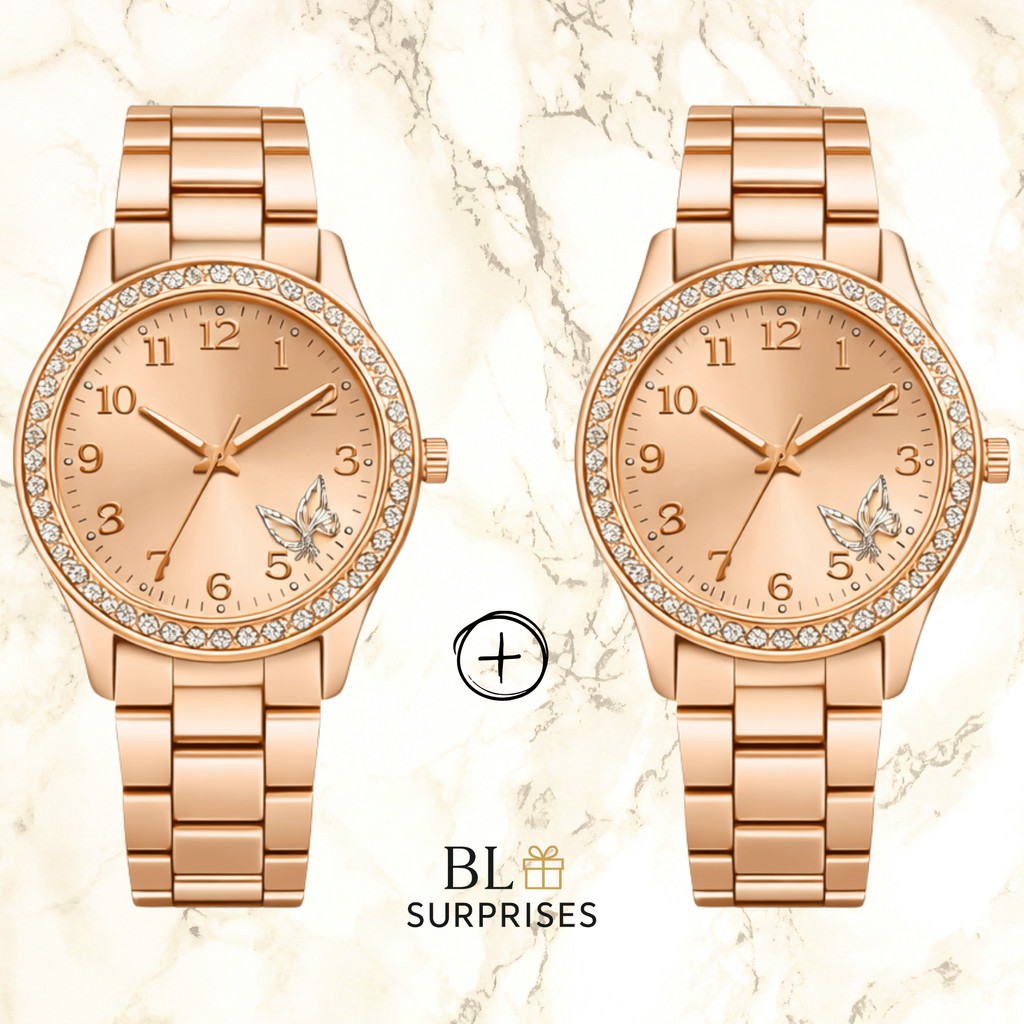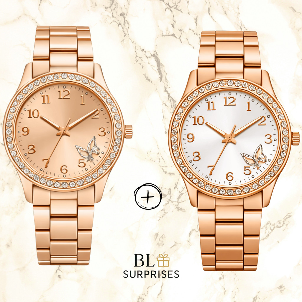 2 Relógios Femininos, Prata, Rose e Dourado Banhado a Ouro 18K Quartzo em Aço Inoxidável.