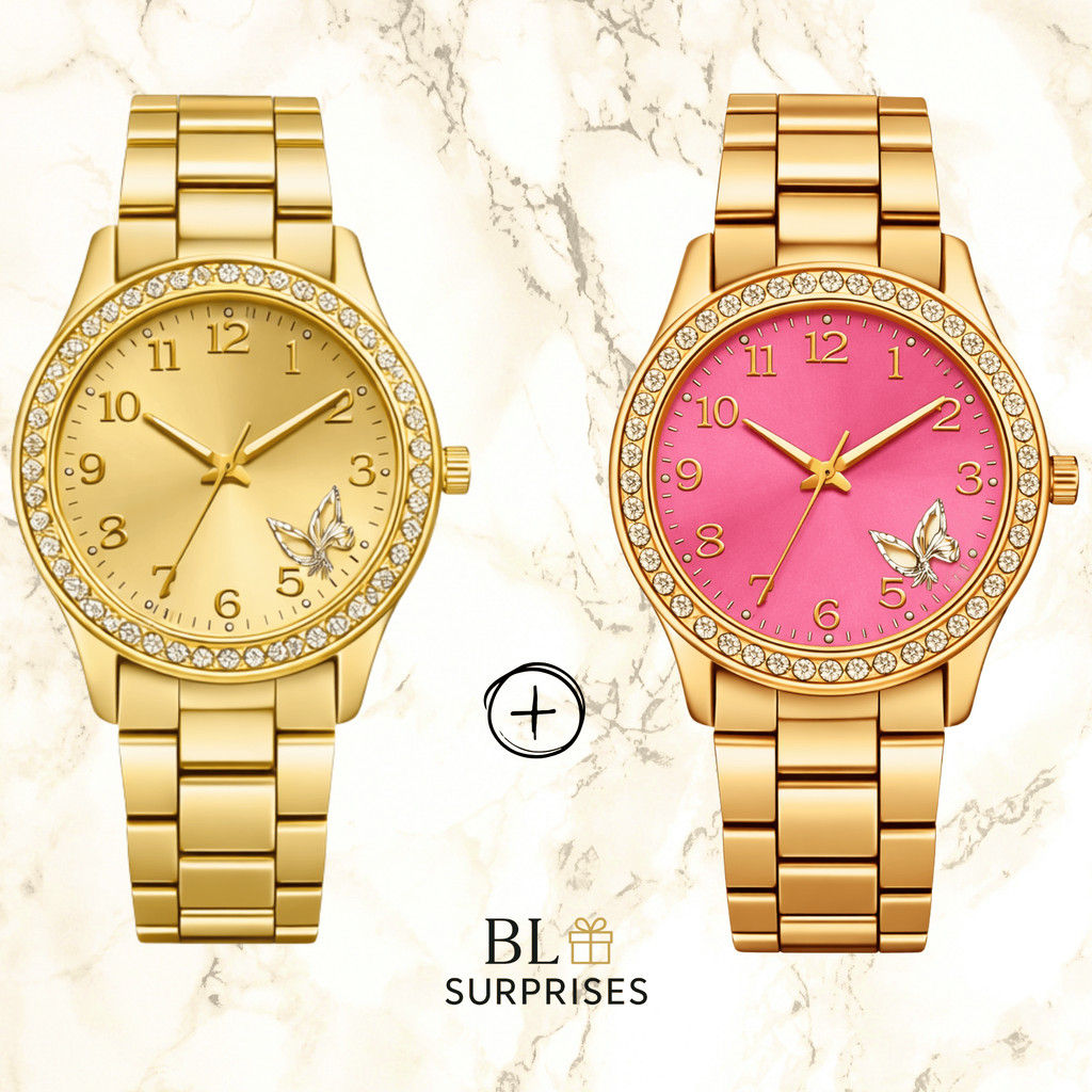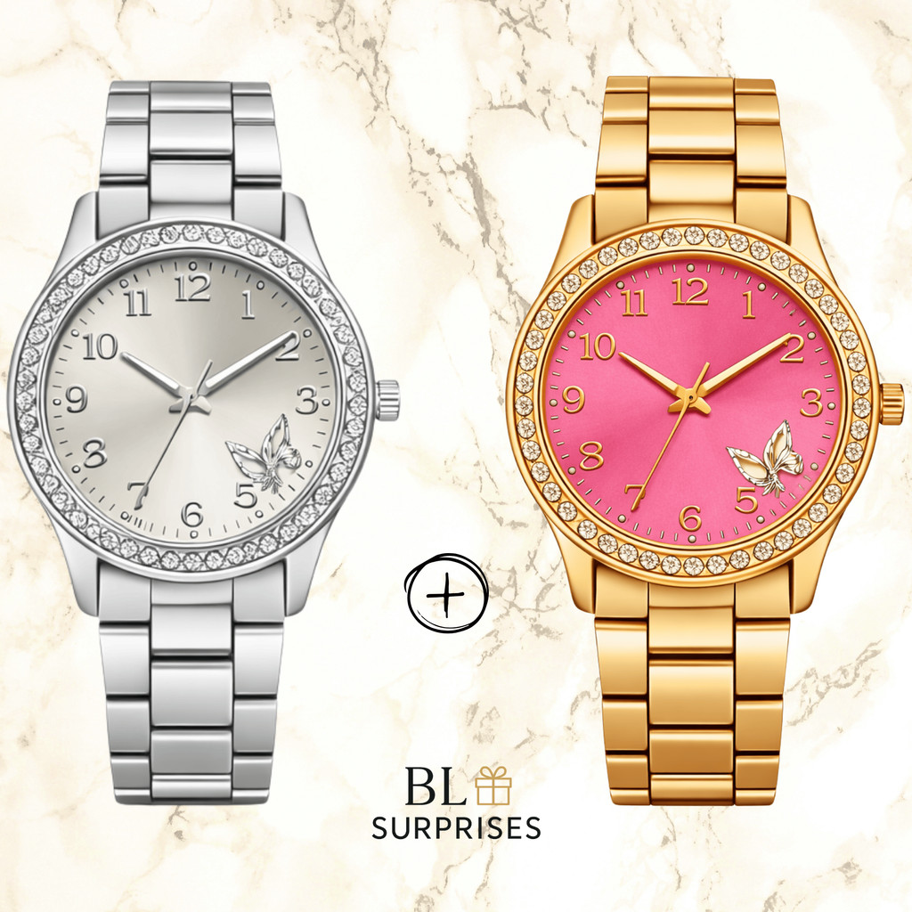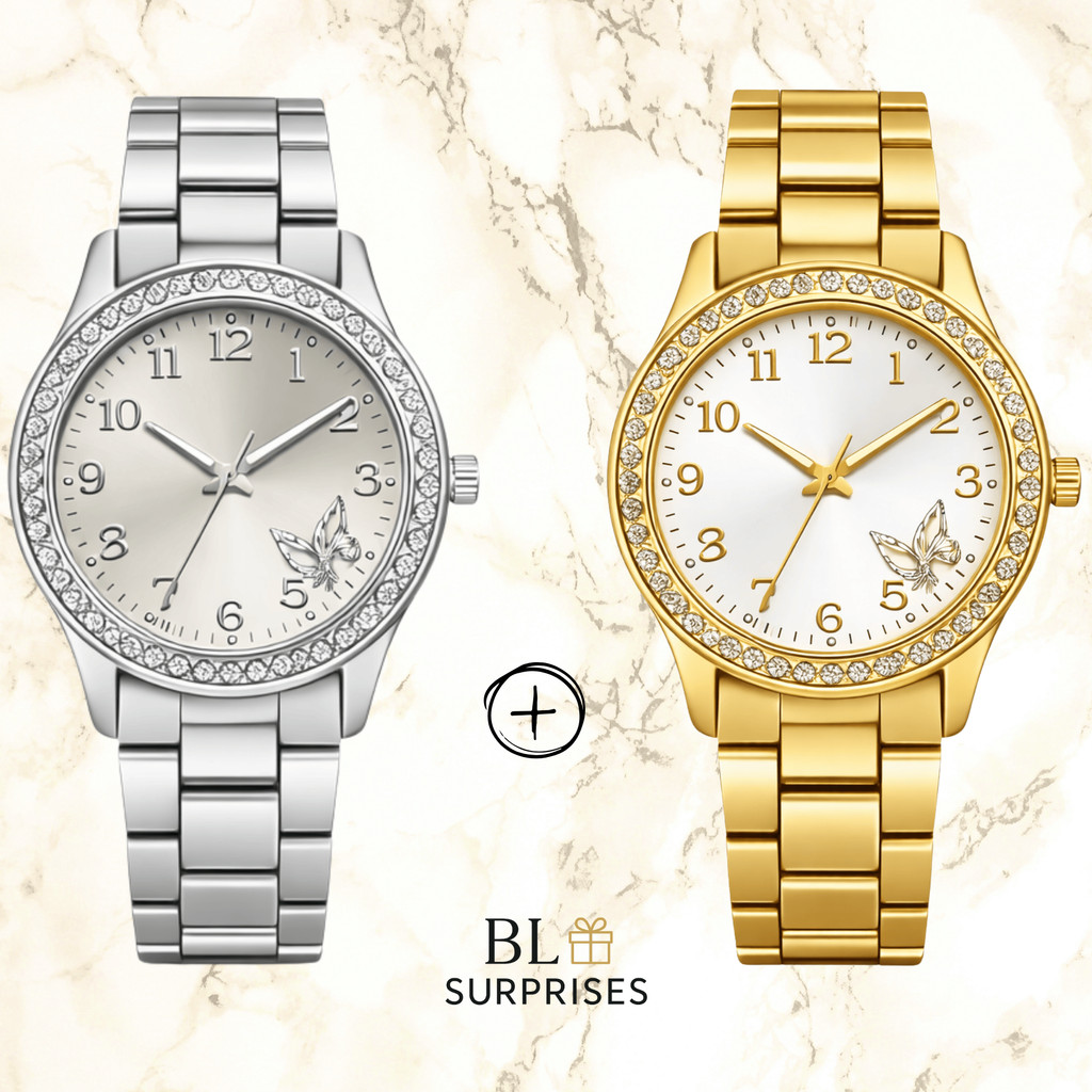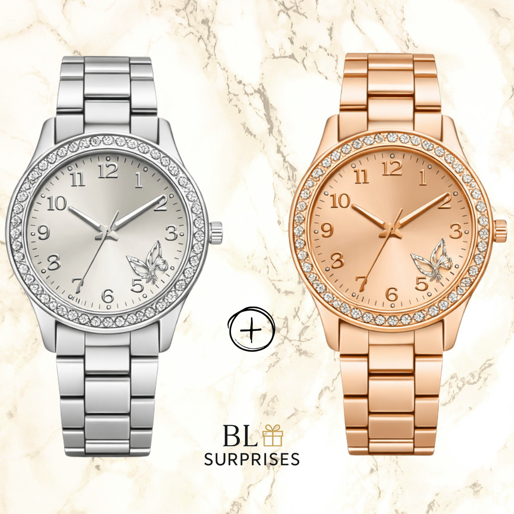 2 Relógios Femininos, Prata, Rose e Dourado Banhado a Ouro 18K Quartzo em Aço Inoxidável.