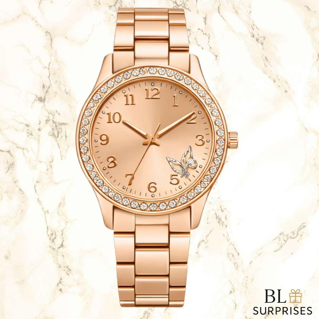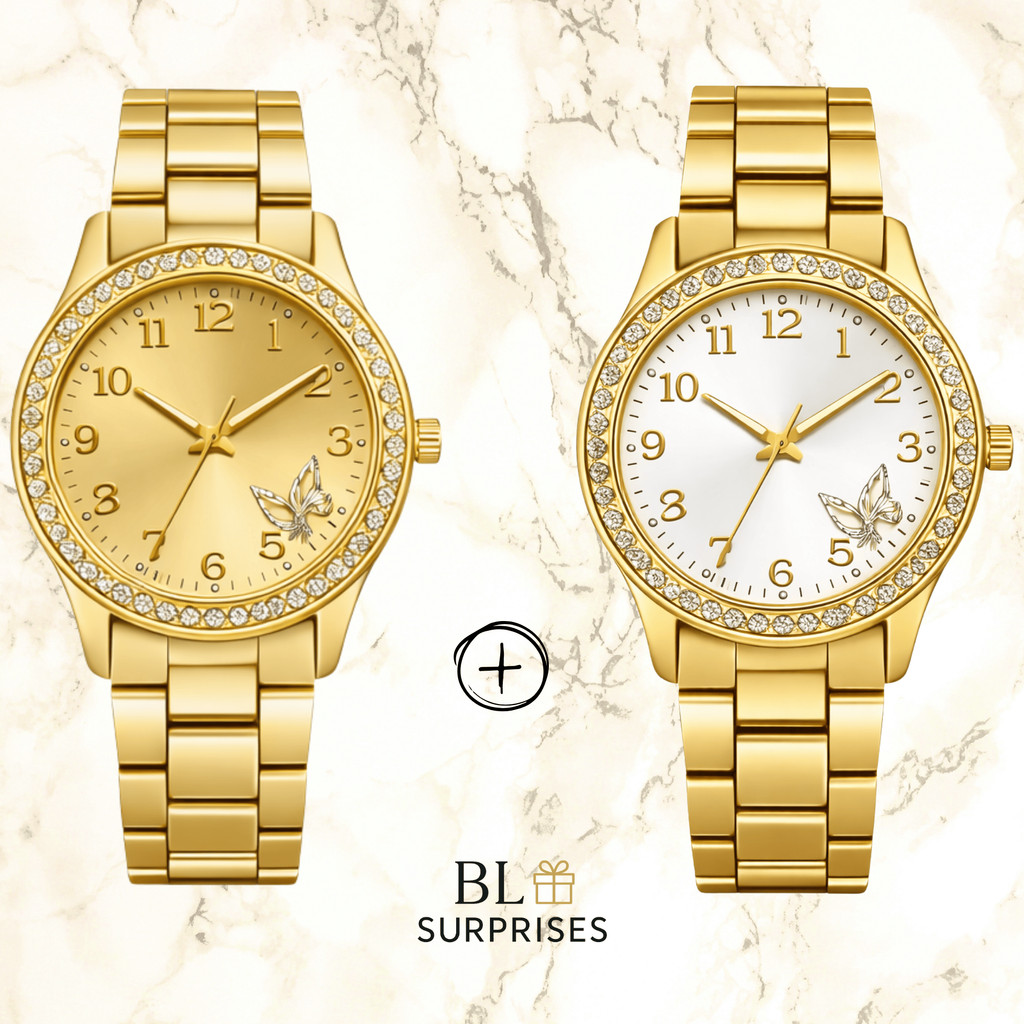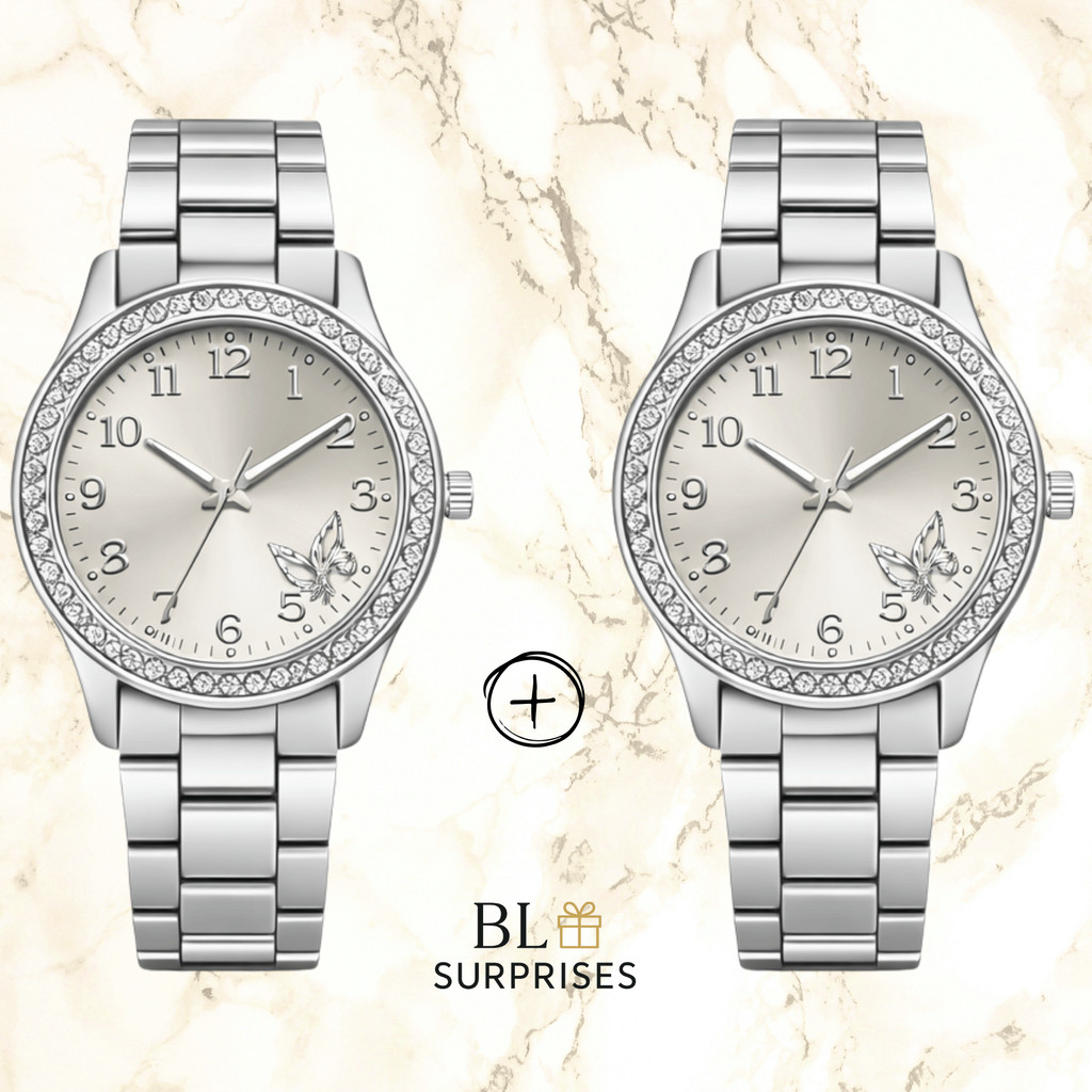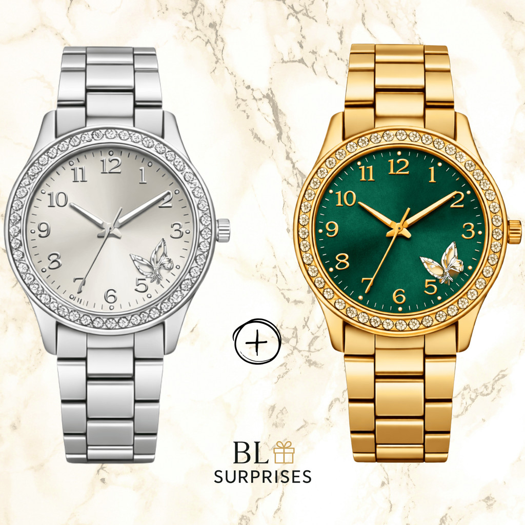 2 Relógios Femininos, Prata, Rose e Dourado Banhado a Ouro 18K Quartzo em Aço Inoxidável.