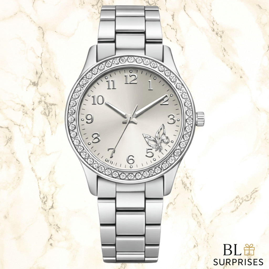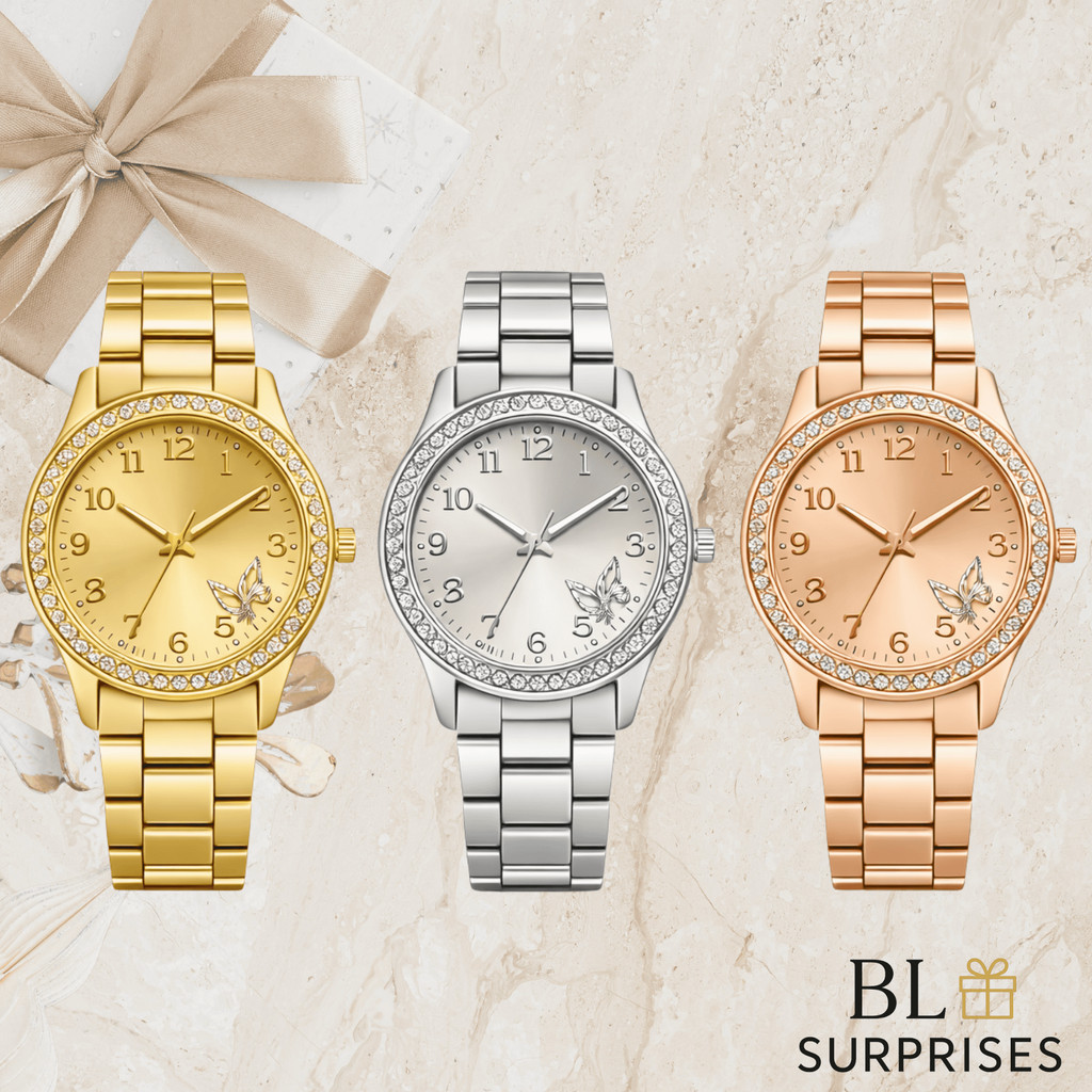 Relógio Feminino Prata Rose Dourado Banhado a Ouro 18K Resistente a Água Quartzo em Aço Inoxidável