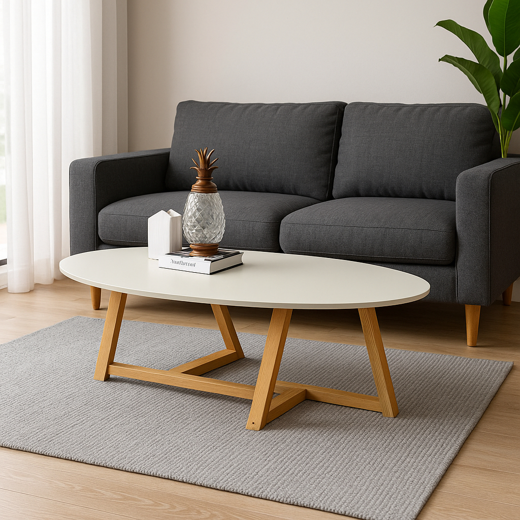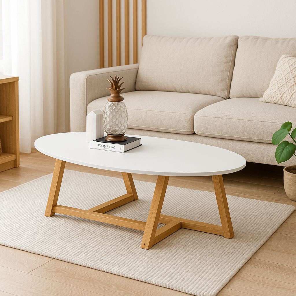Mesinha Mesa De Centro De Sala Classic Oval Pés De Madeira Maciça Decorativa Luxo