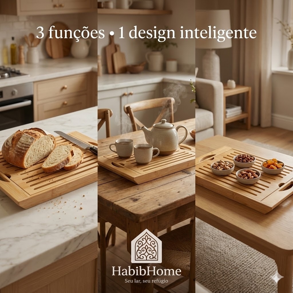 Bandeja Migalheira 4 em 1 de Bambu – Multiuso para Pães, Café e Panelas