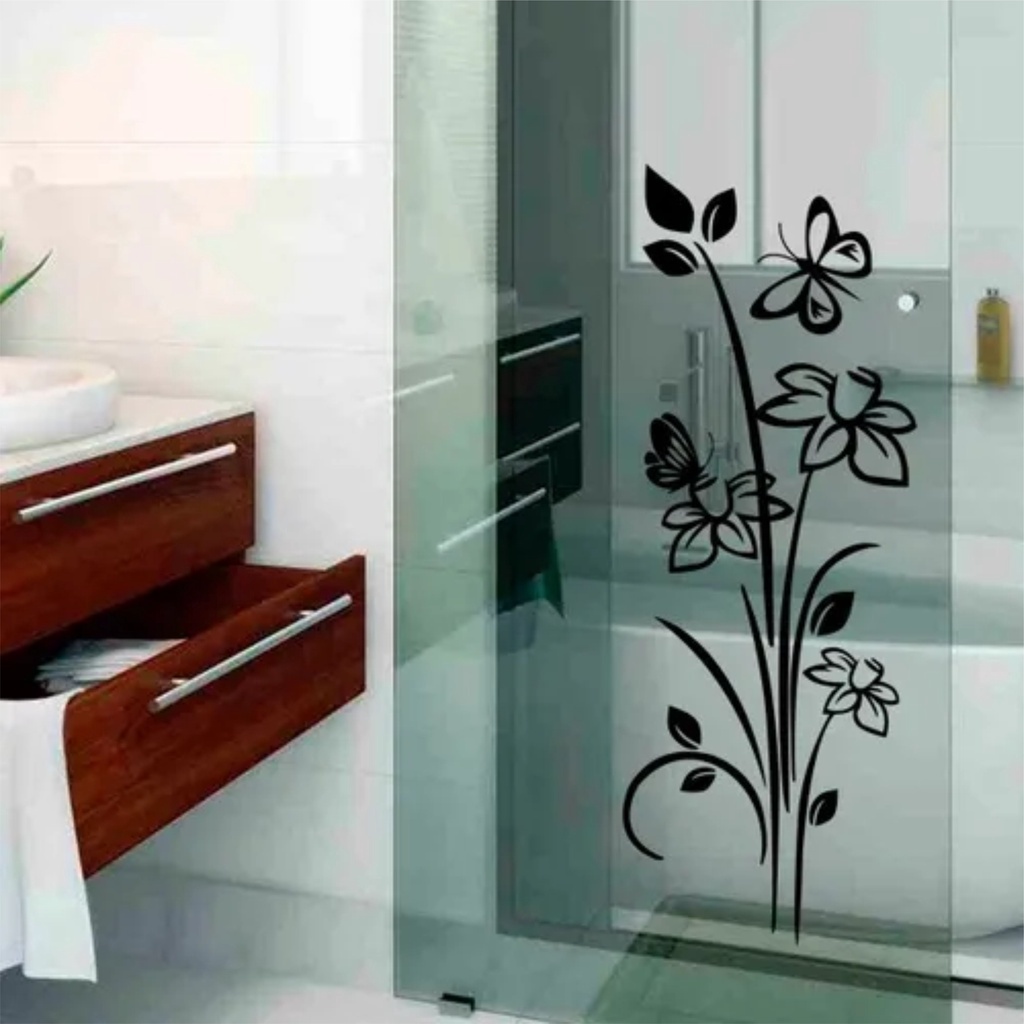 Adesivo Decorativo Para Box De Banheiro Floral Flor Borboleta