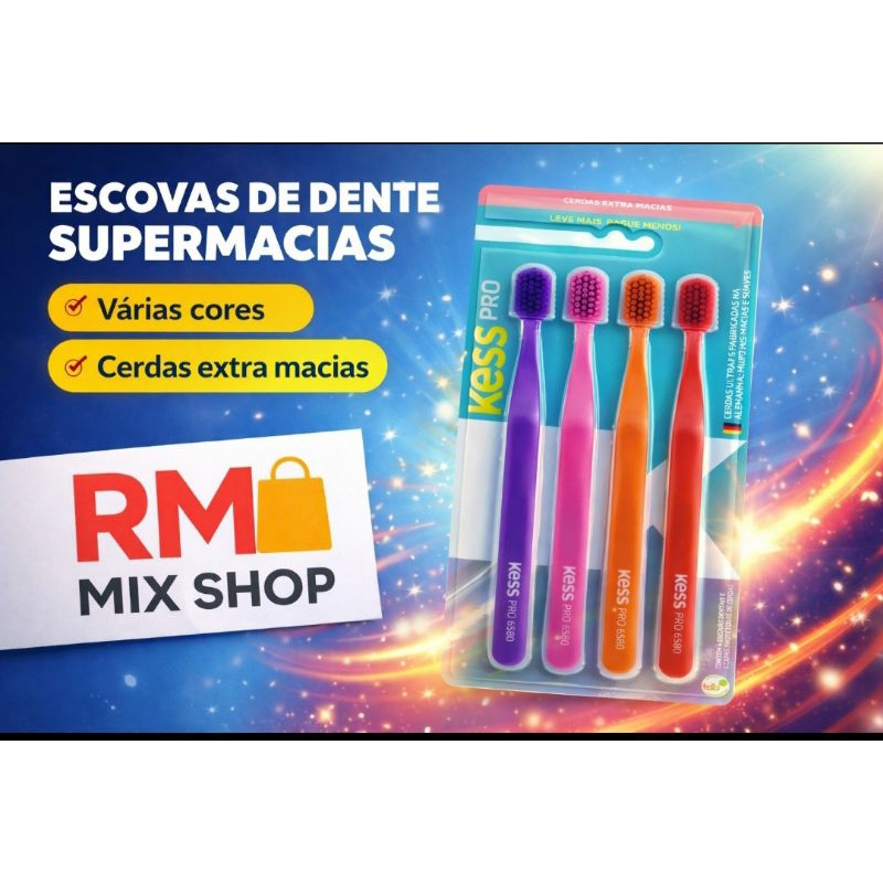 Escova Dental Kess Pro Extra Macia 4 Unidades – Limpeza Suave, Cores Sortidas, Protege Gengivas