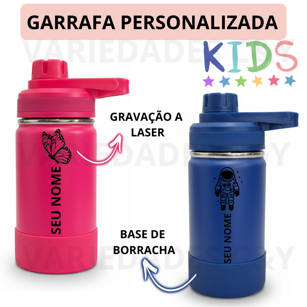 Garrafa Térmica Personalizada 350ml Inox Infantil Escolar para Lancheira Volta ás Aulas