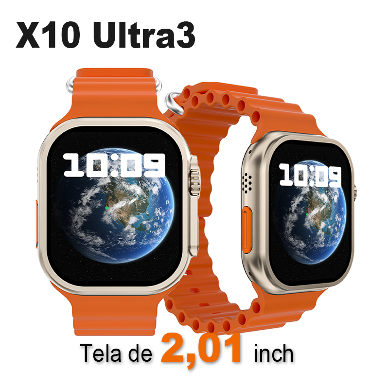 Relógio Inteligente X10 Ultra 3 Laranja - Smartwatch Bluetooth, Tela 2.01", Chamadas Bluetooth