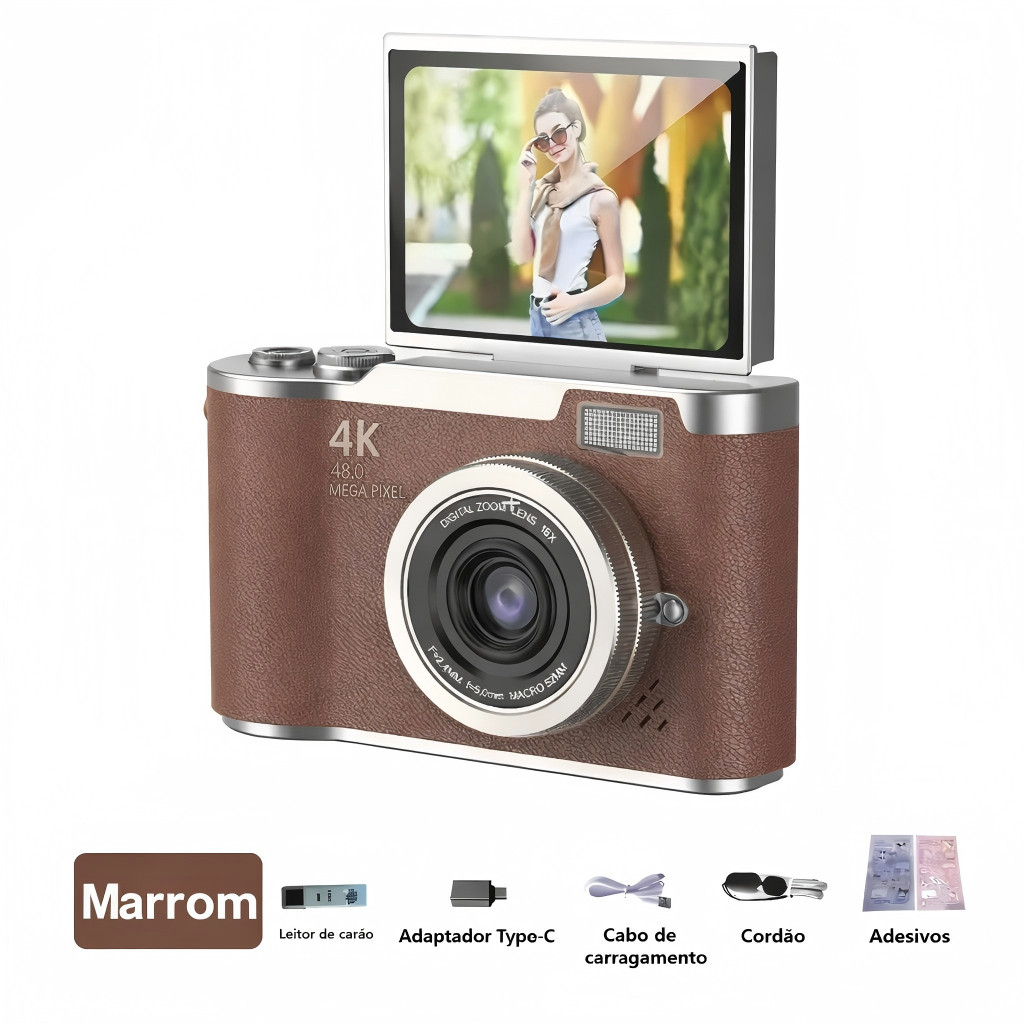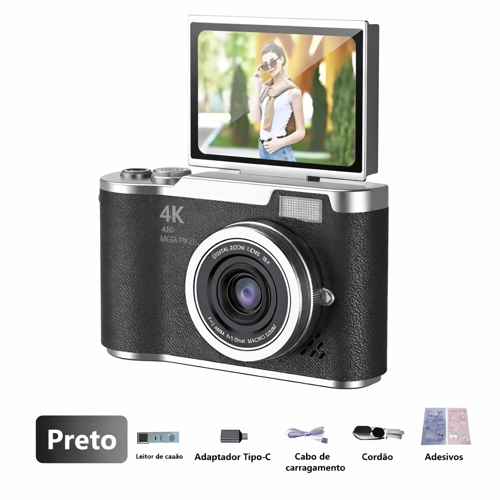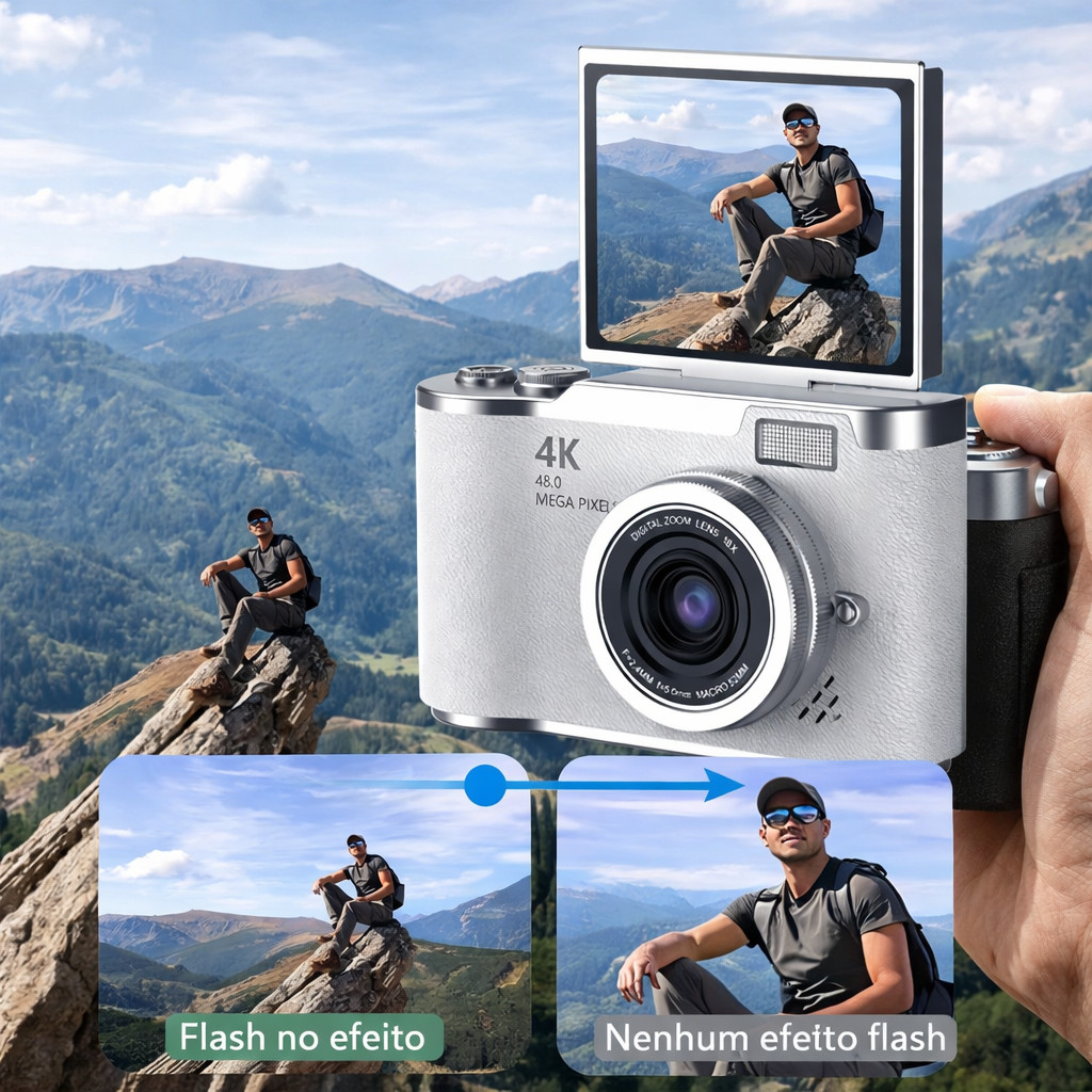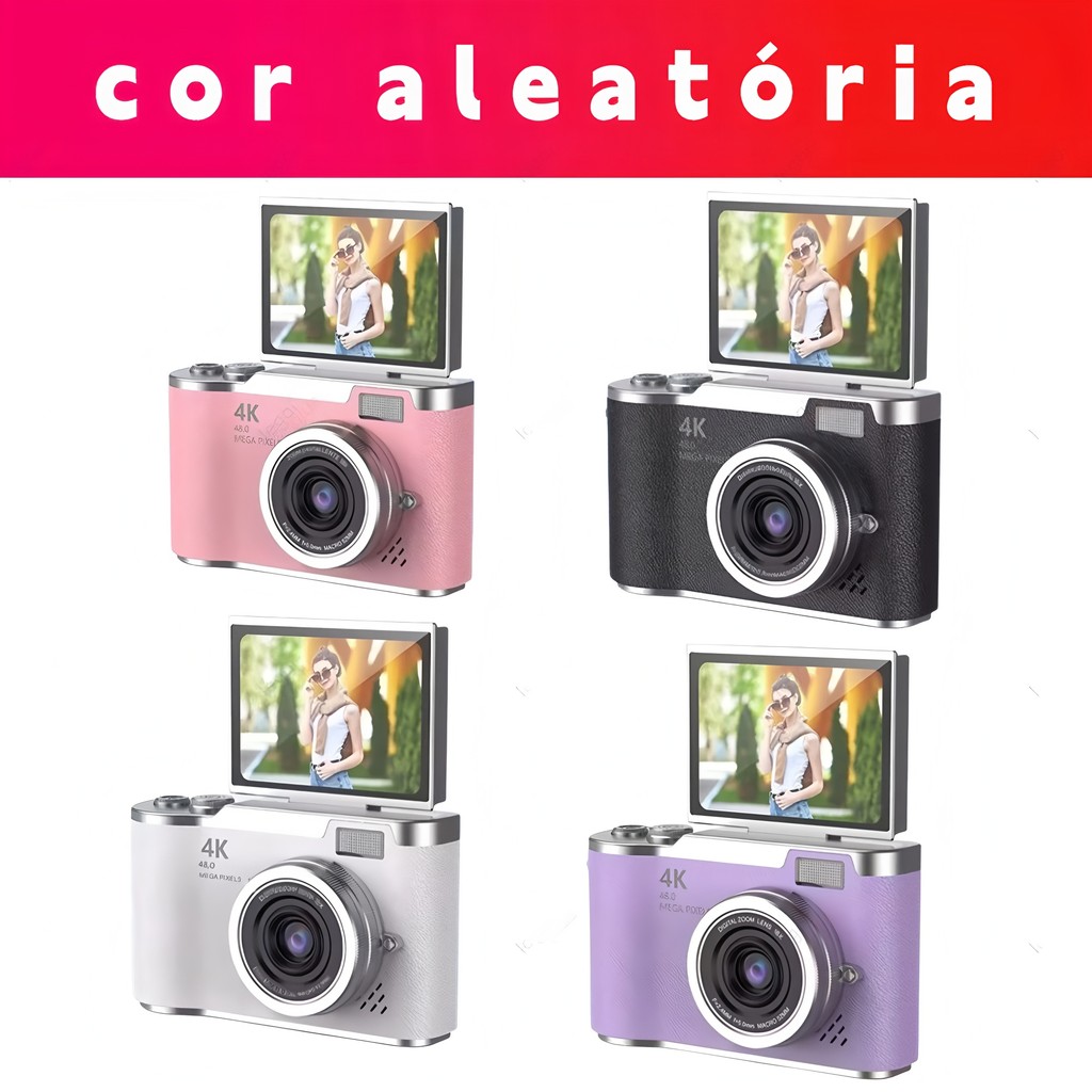câmera digital com zoom 4k ccd 8x, adequada para fotografia estudantil, tela flip selfie de 180° FUSHANG