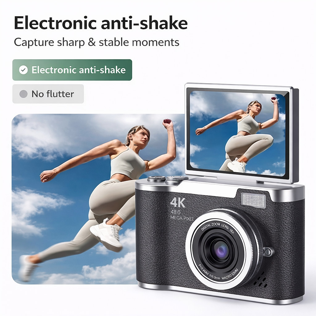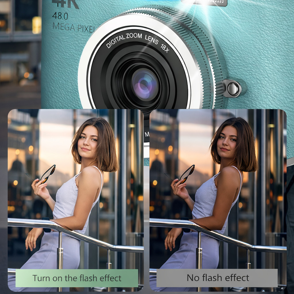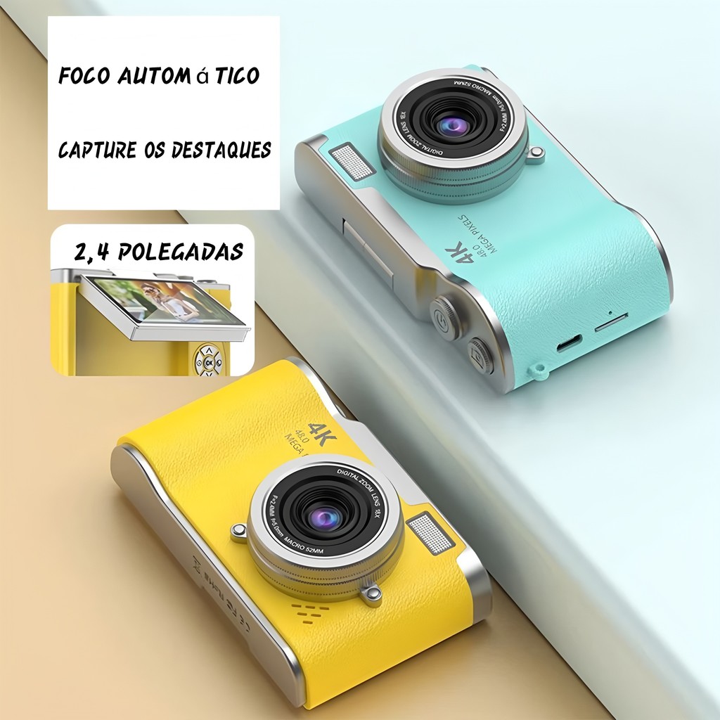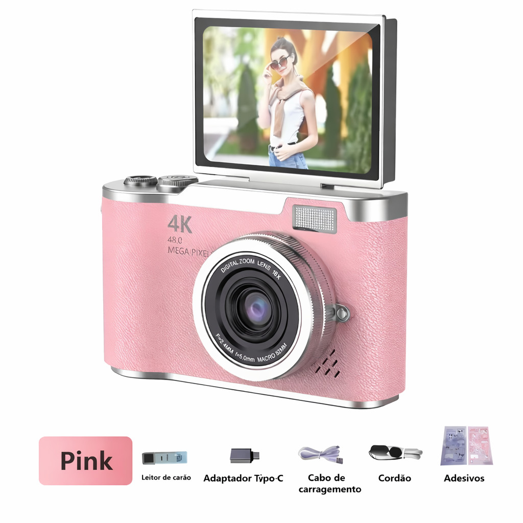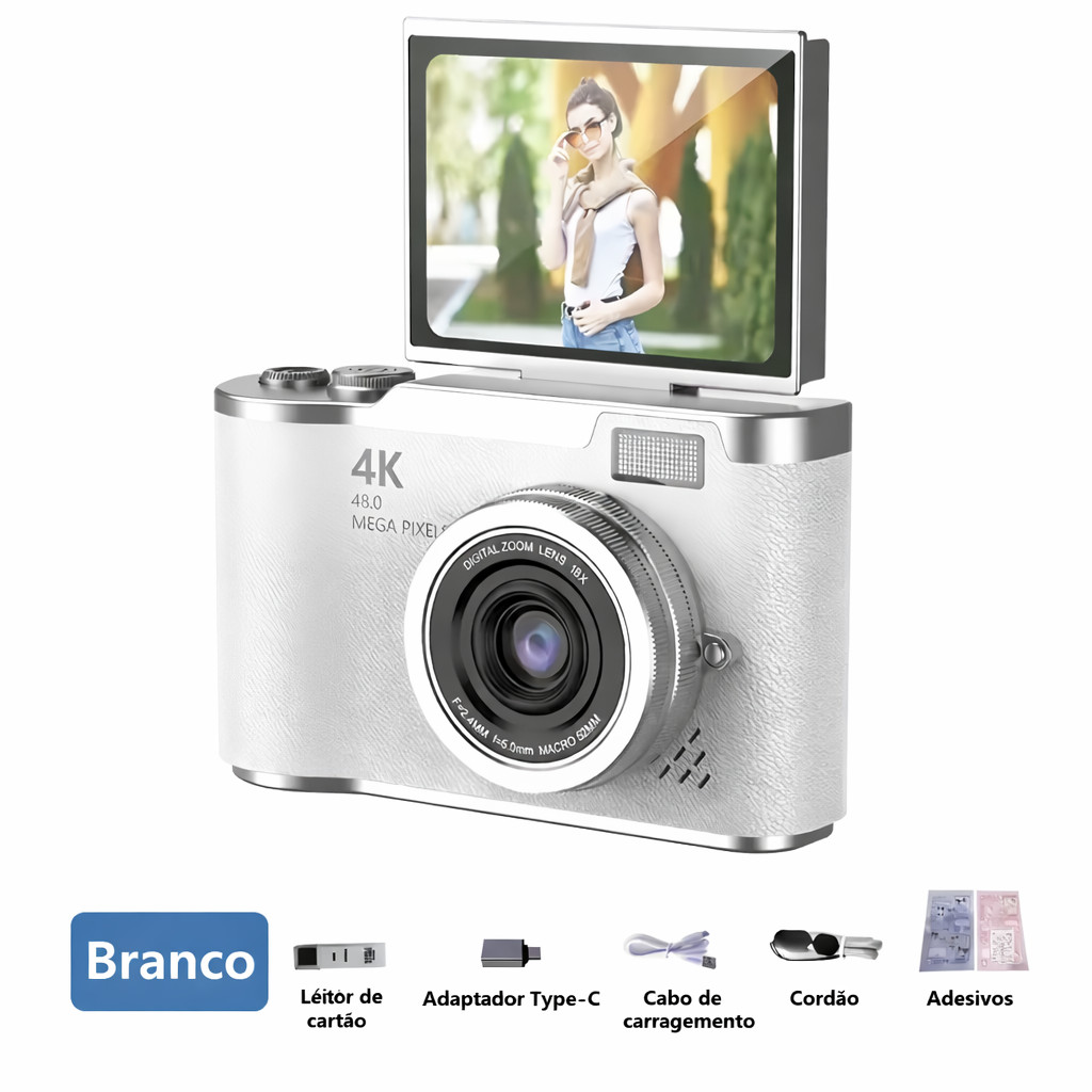 câmera digital com zoom 4k ccd 8x, adequada para fotografia estudantil, tela flip selfie de 180° FUSHANG