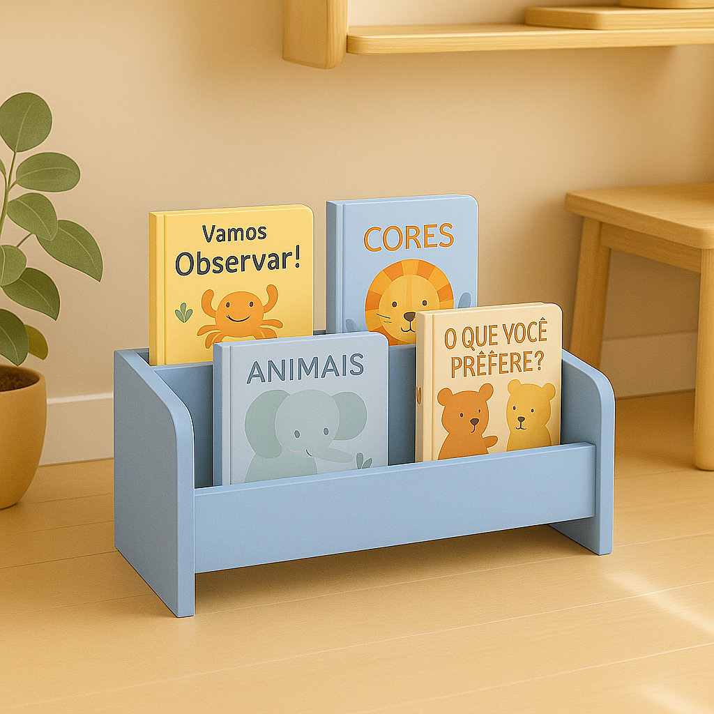 Revisteiro Infantil MDF para Livros Organização e Cantinho da Leitura Quartos Montessori Retangular