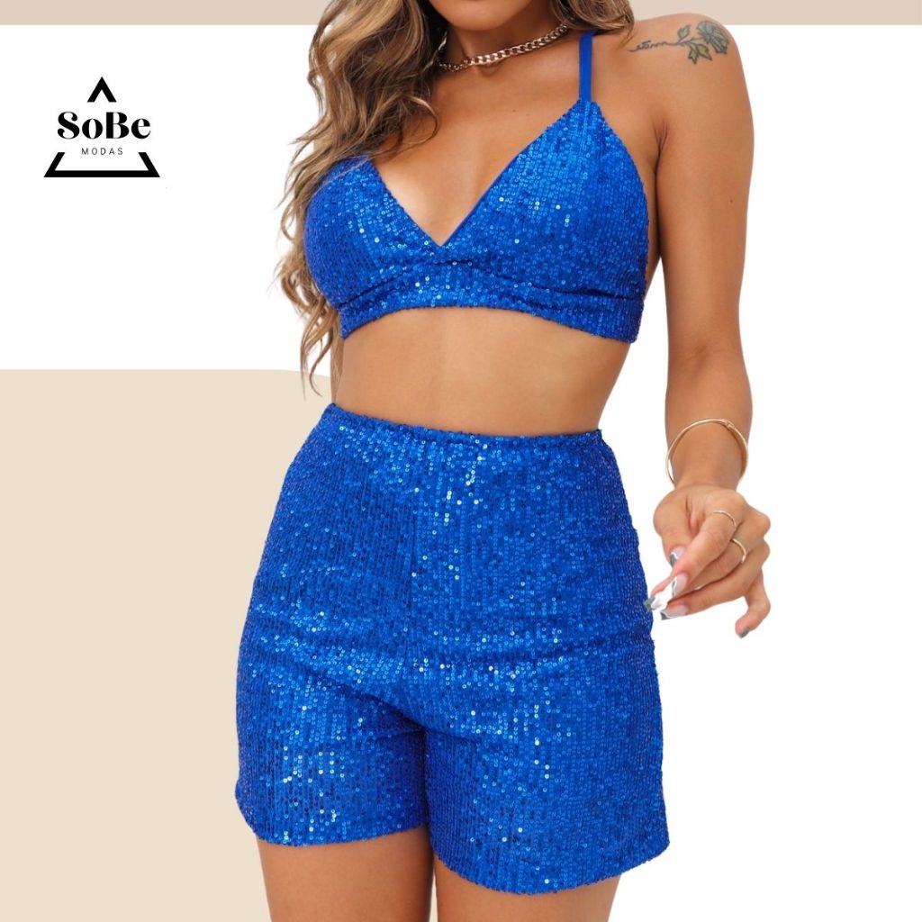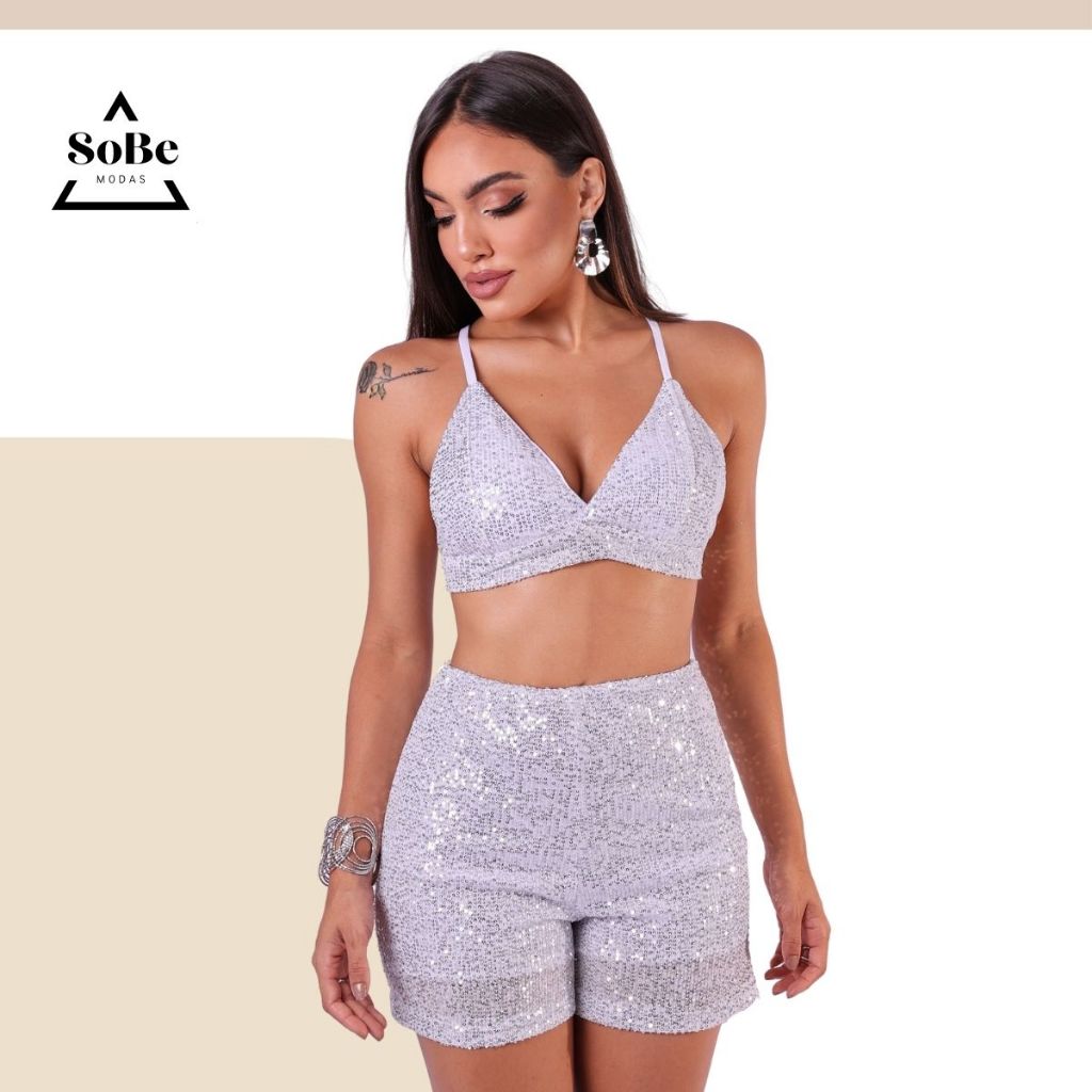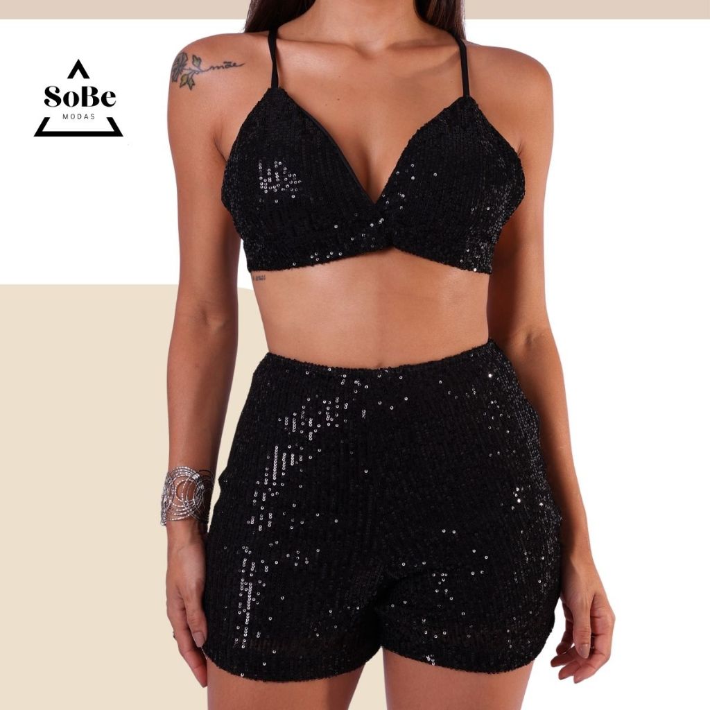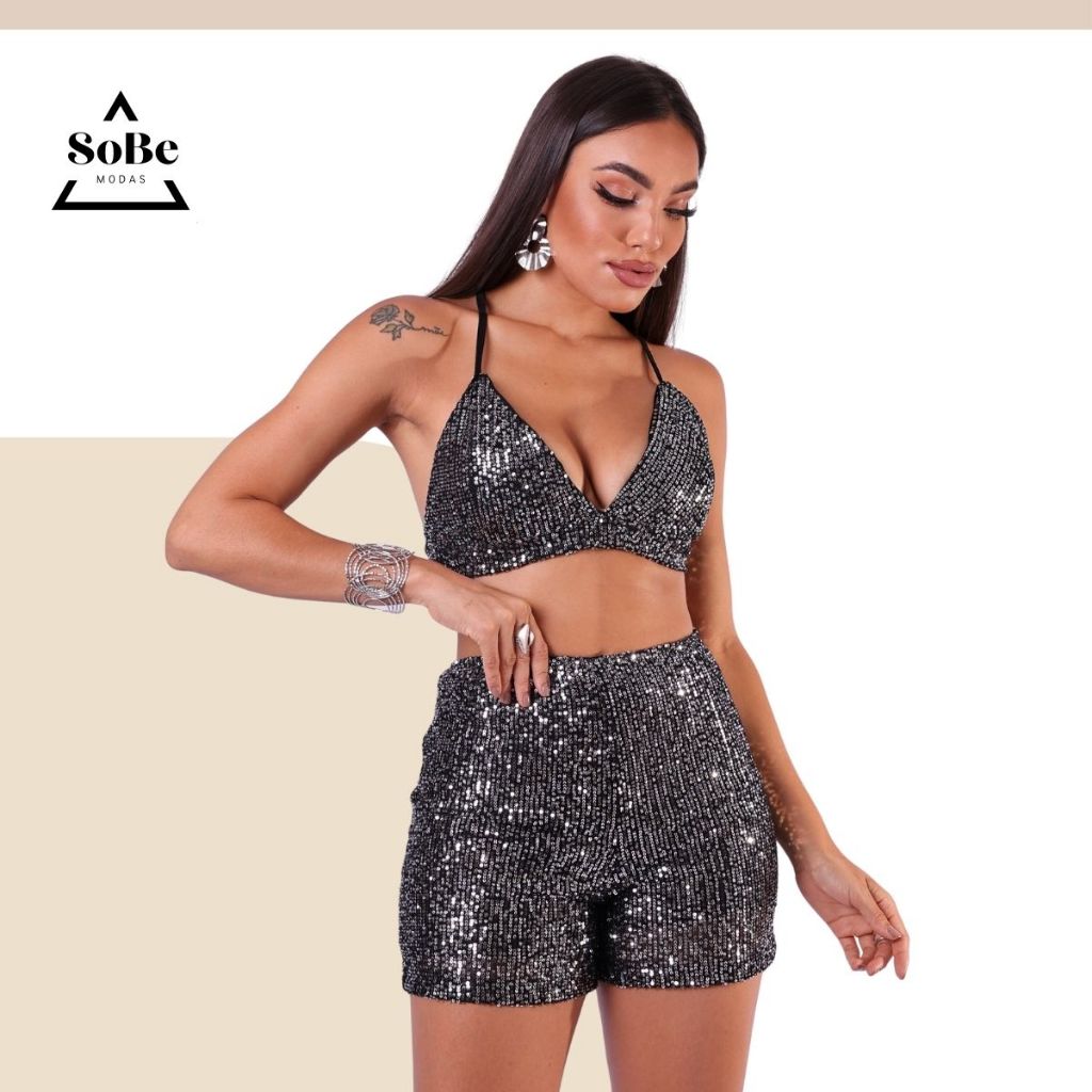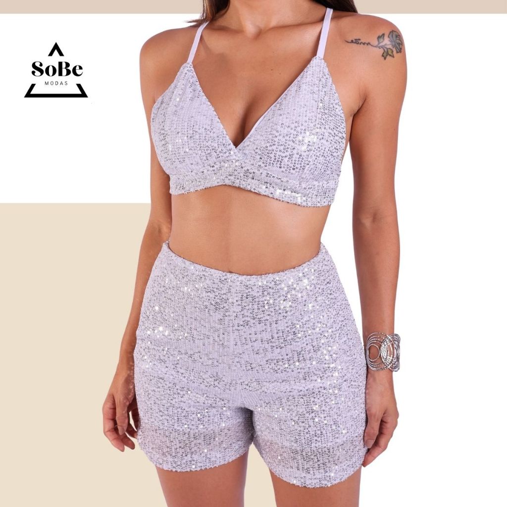 Conjunto Brilho Paete Lentejoula Short E Top Sutia Festa