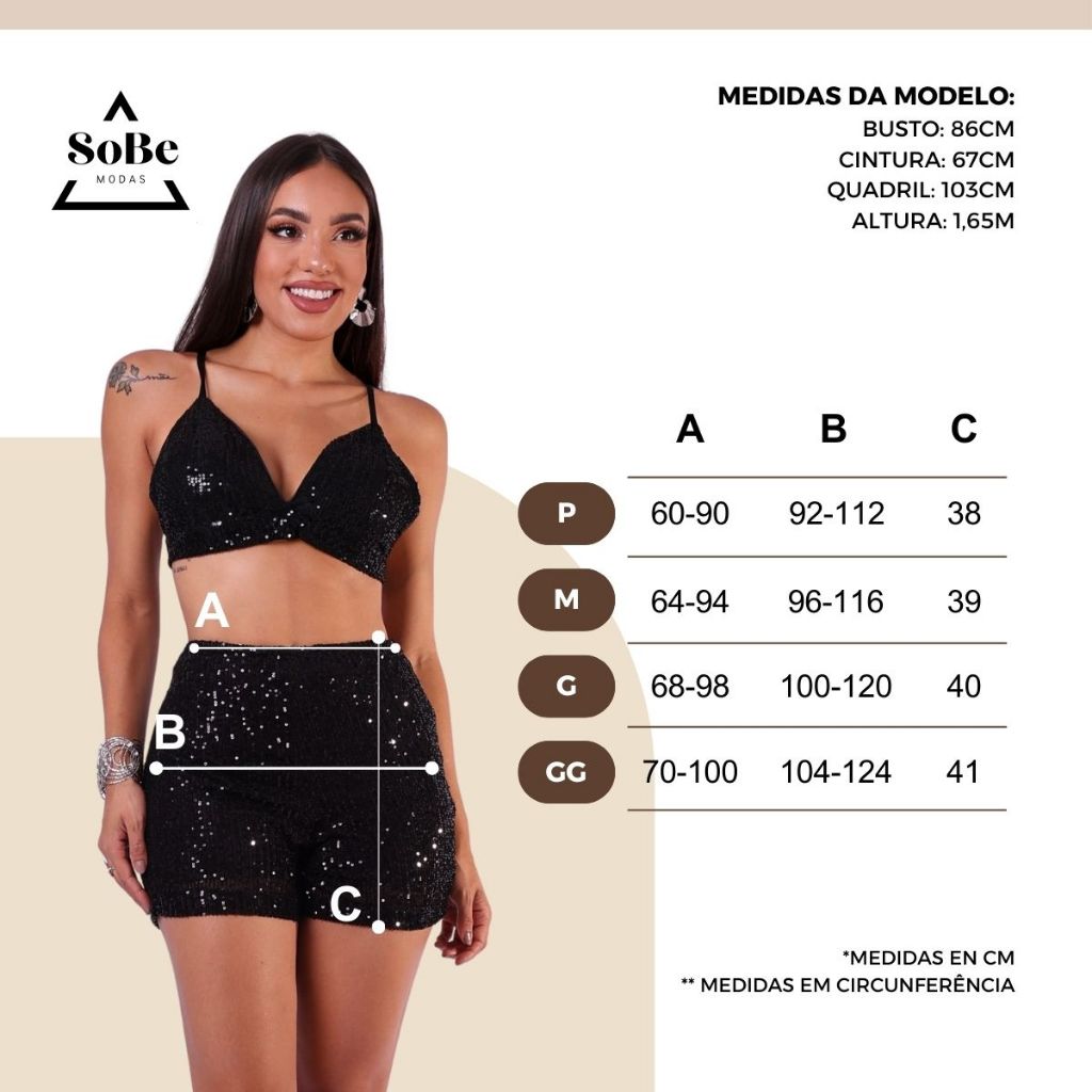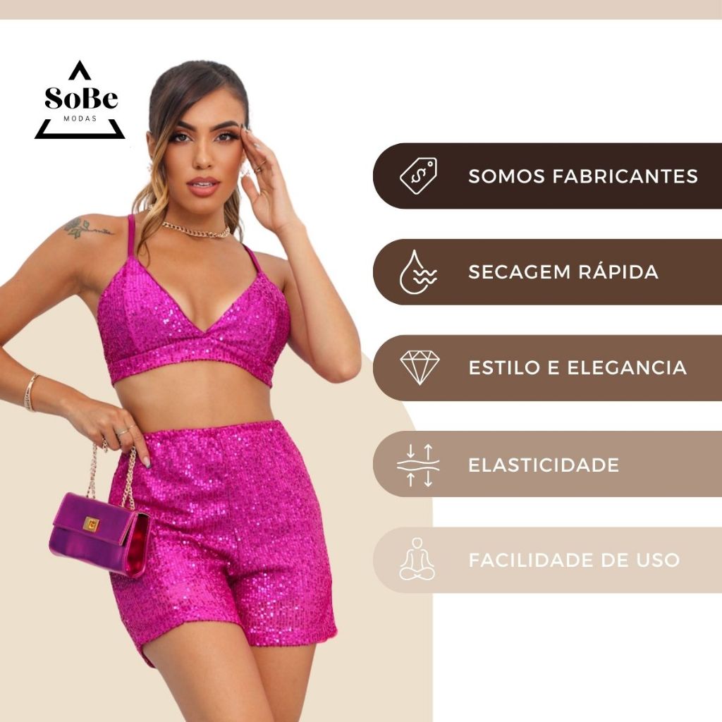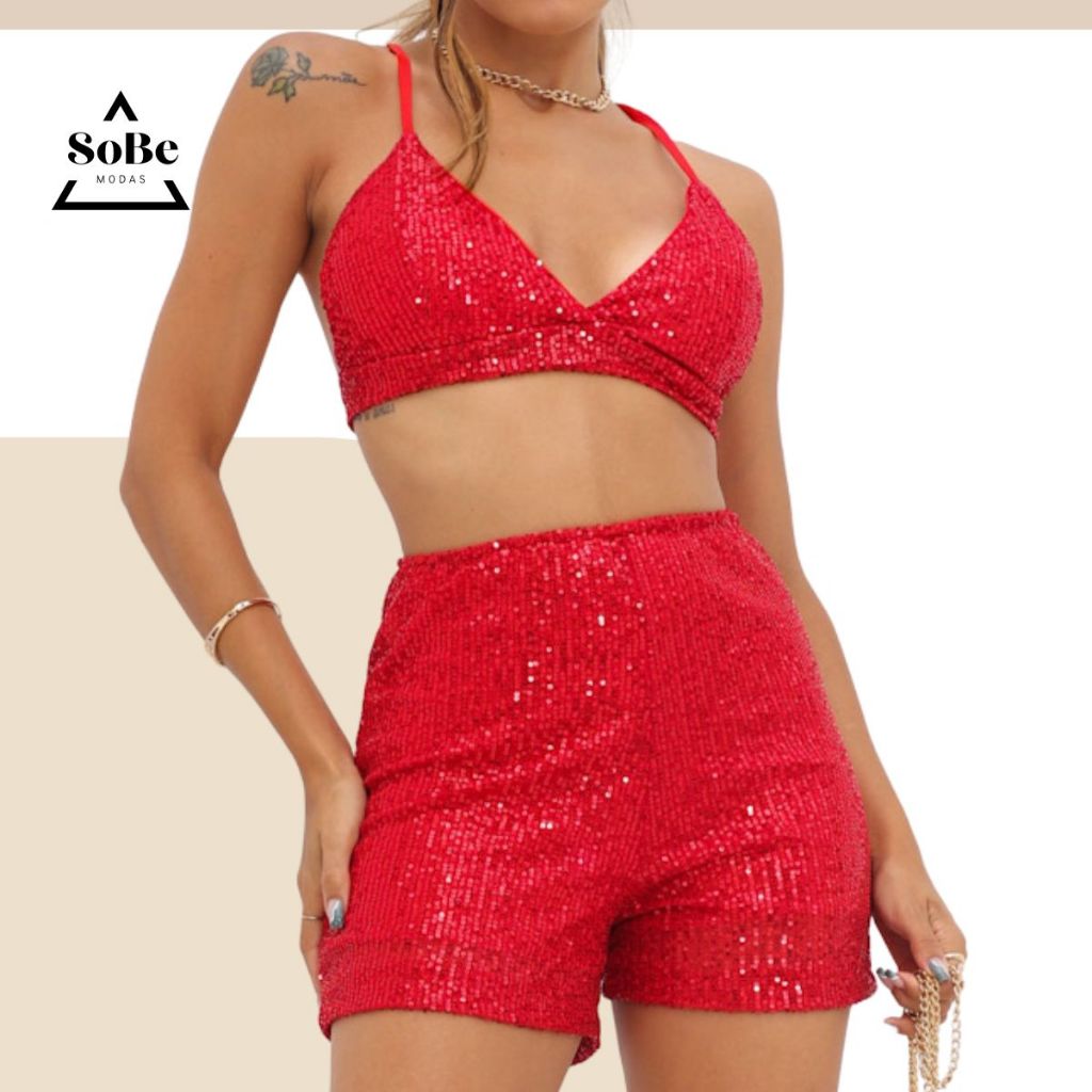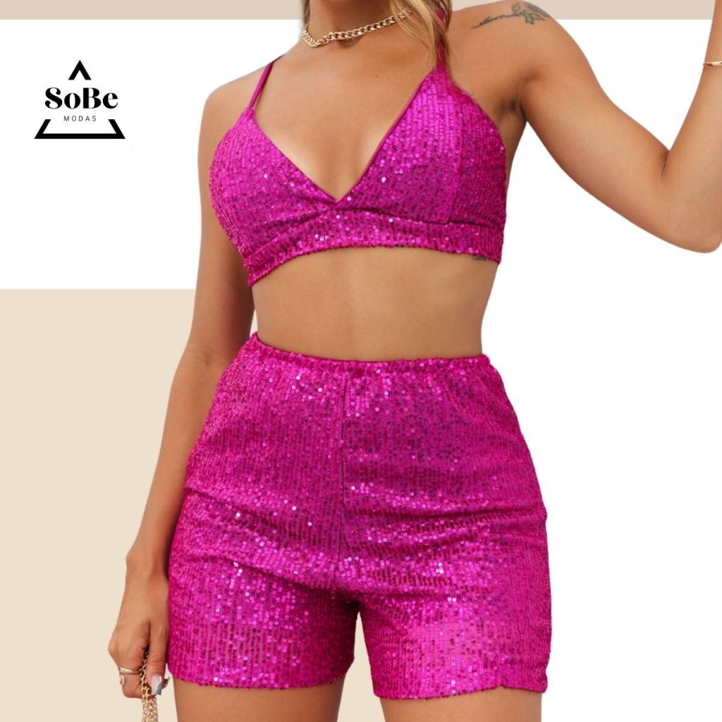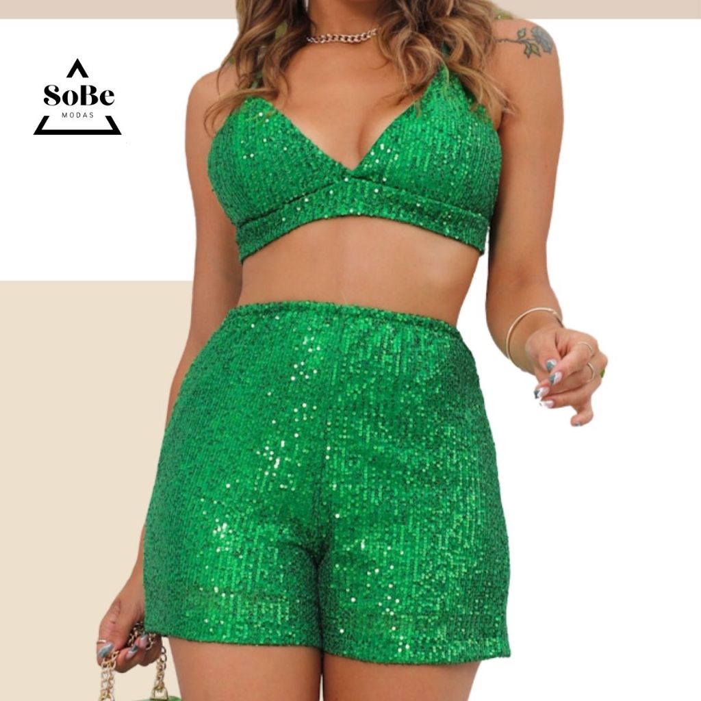 Conjunto Brilho Paete Lentejoula Short E Top Sutia Festa