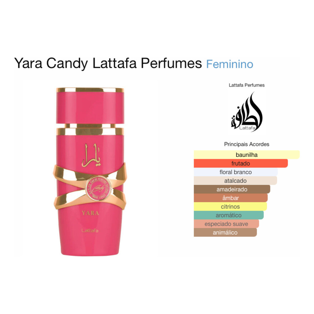 Perfume Lattafa Yara Candy EDP 100ml Feminino com Doçura Suave e Toque de Morango Floral, Perfeito para o Dia a Dia