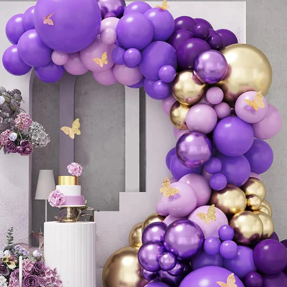Kit 150 Balões Bexiga Luxo Lilás Roxo Cromado Arco Desconstruído Festa Dourado Decoração Aniversario