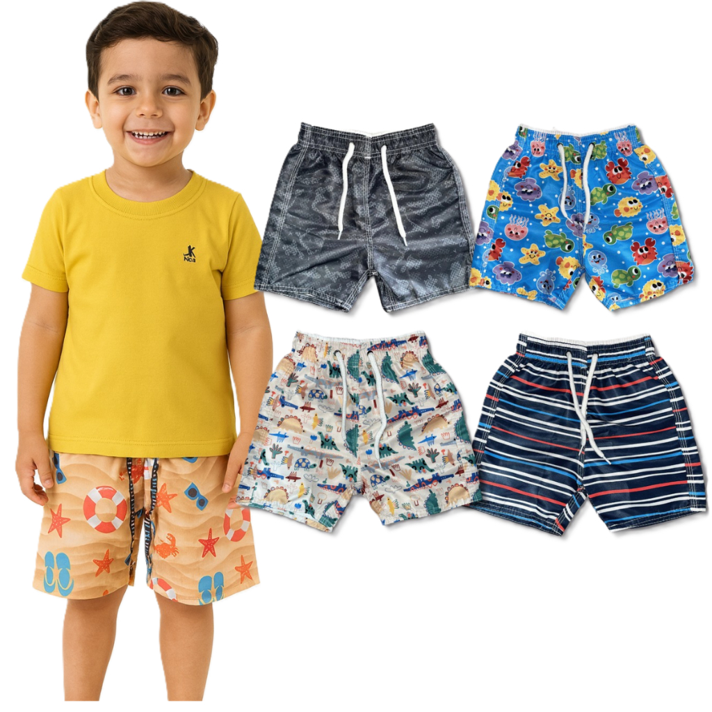KIT INFANTIL COM 10 PEÇAS TACTEL ESTAMPADA BERMUDA TACTEL INFANTIL COM DESENHOS
