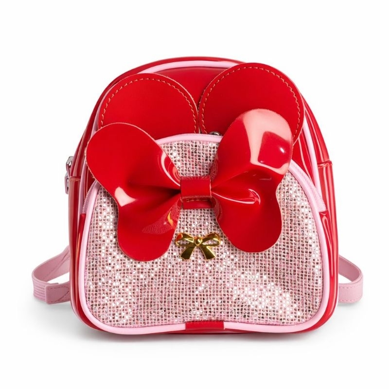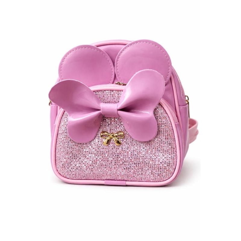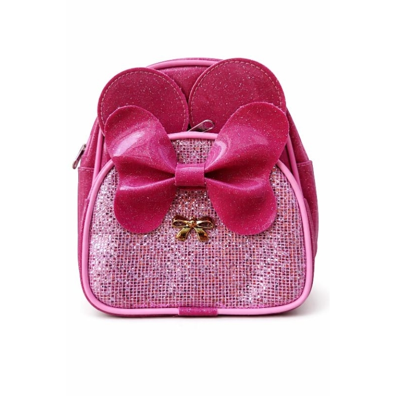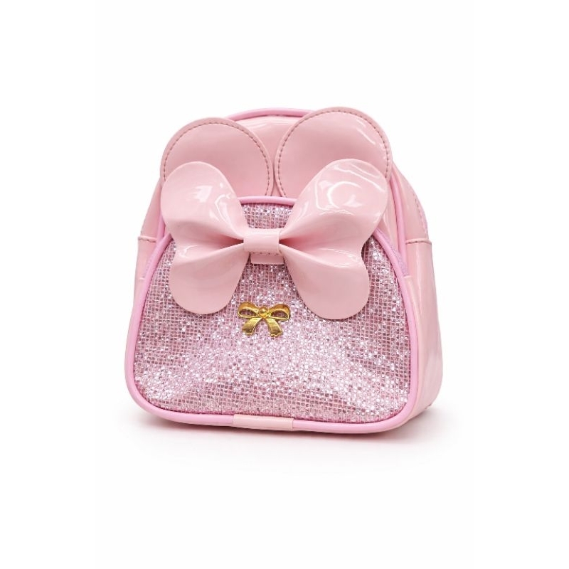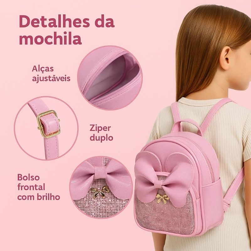Mochila Infantil Rosa Brilho com Laço Grande e Orelhinhas – Bolsa Menina Fashion Escolar Presente