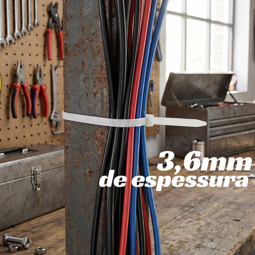 Kit 400 Abraçadeira 10cm x 3,6mm Plástica Branca Nylon Enforca Gato Presilha Lacre Fita Cinta