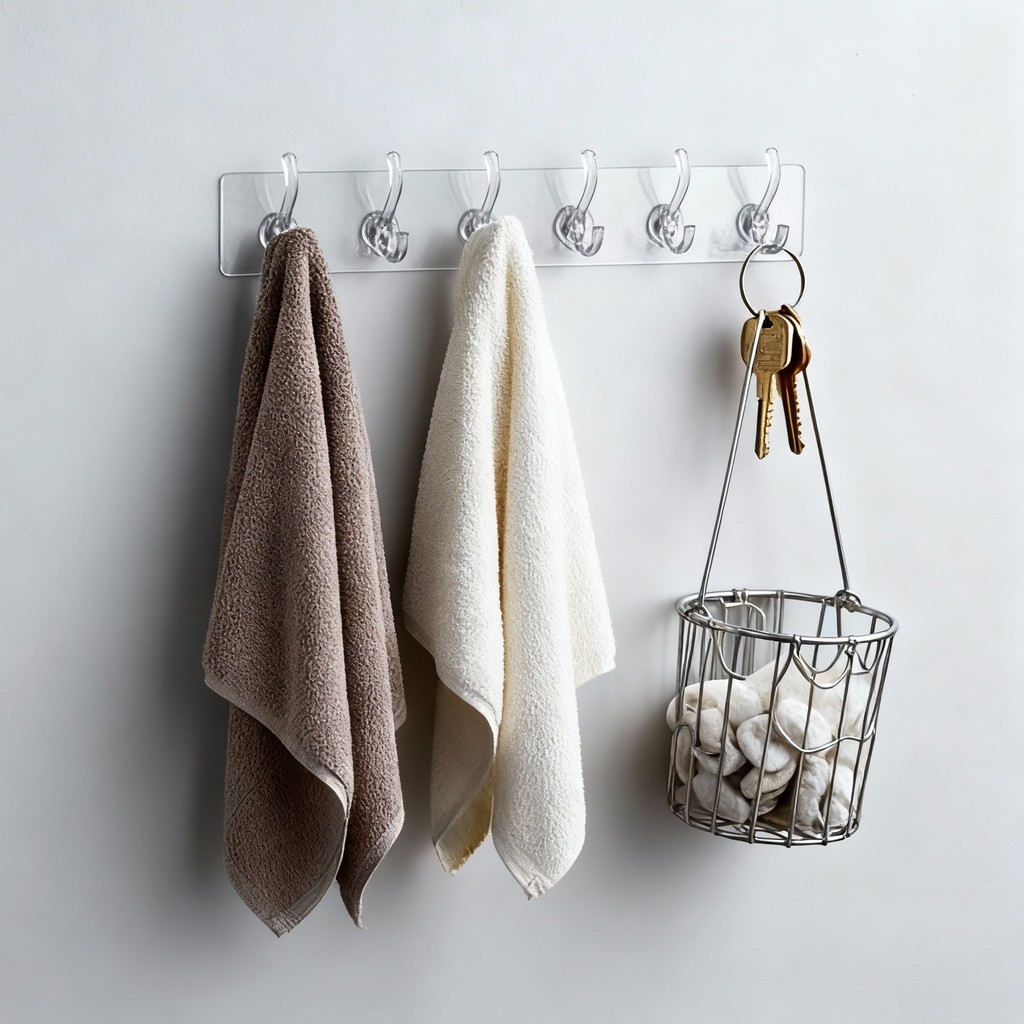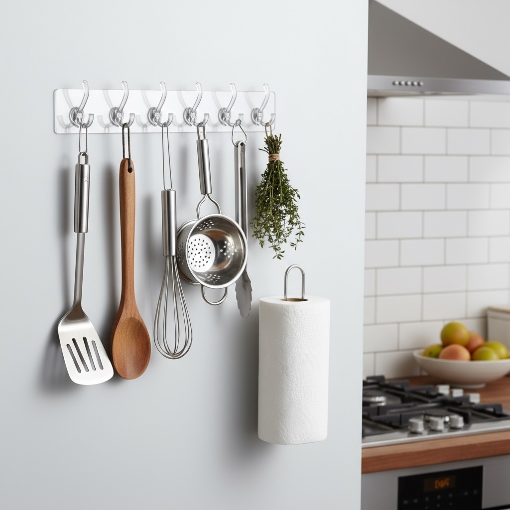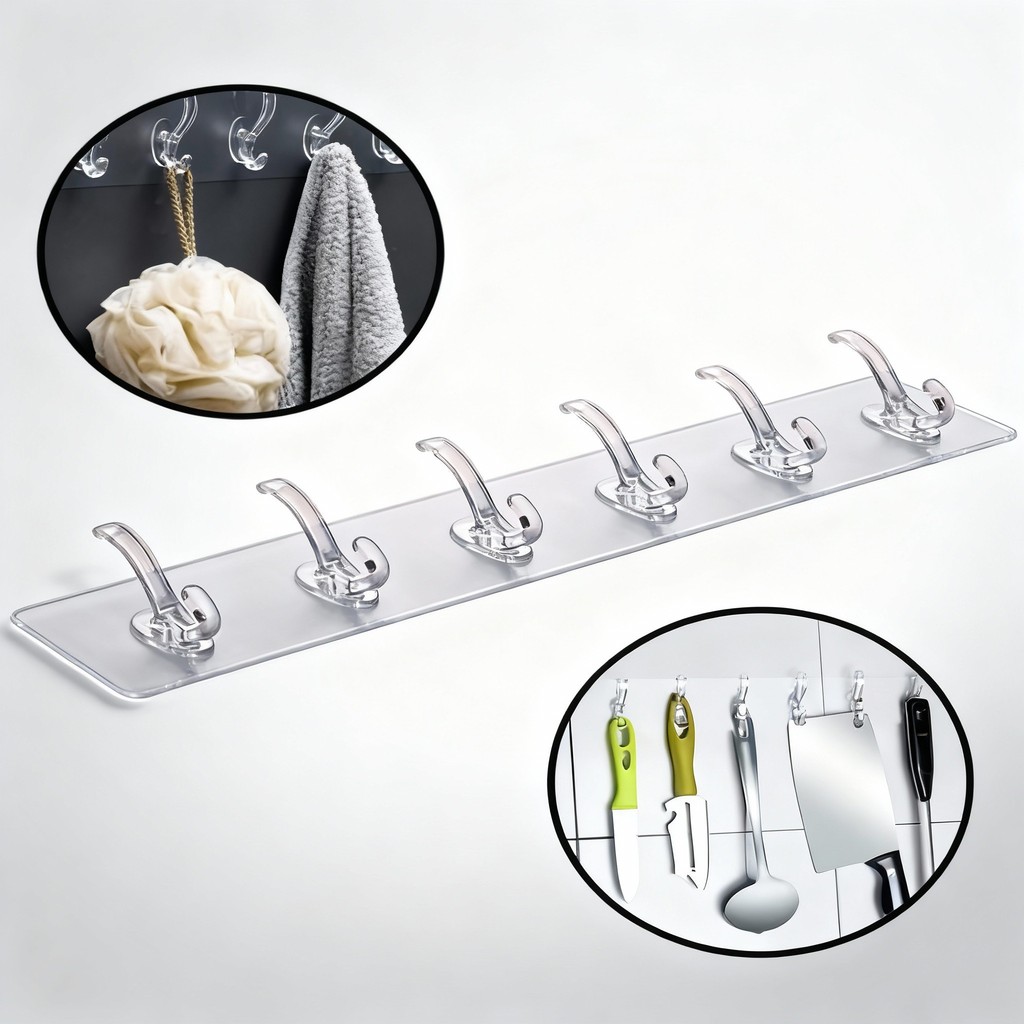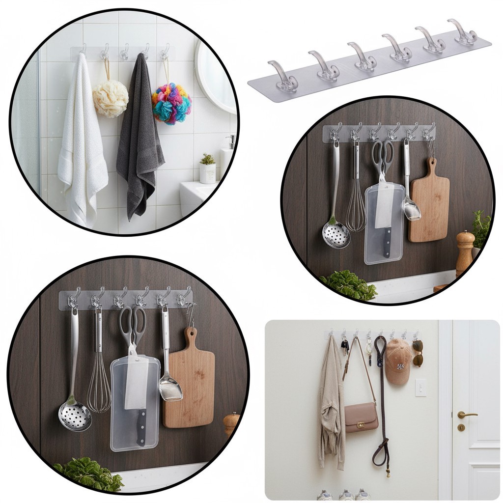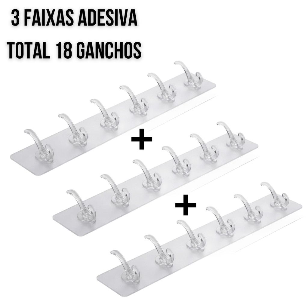 Kit 3 Faixa Adesivo 6 Ganchos Parede Cozinha Banheiro AutoColante Transparente Multiuso Suporte Organização
