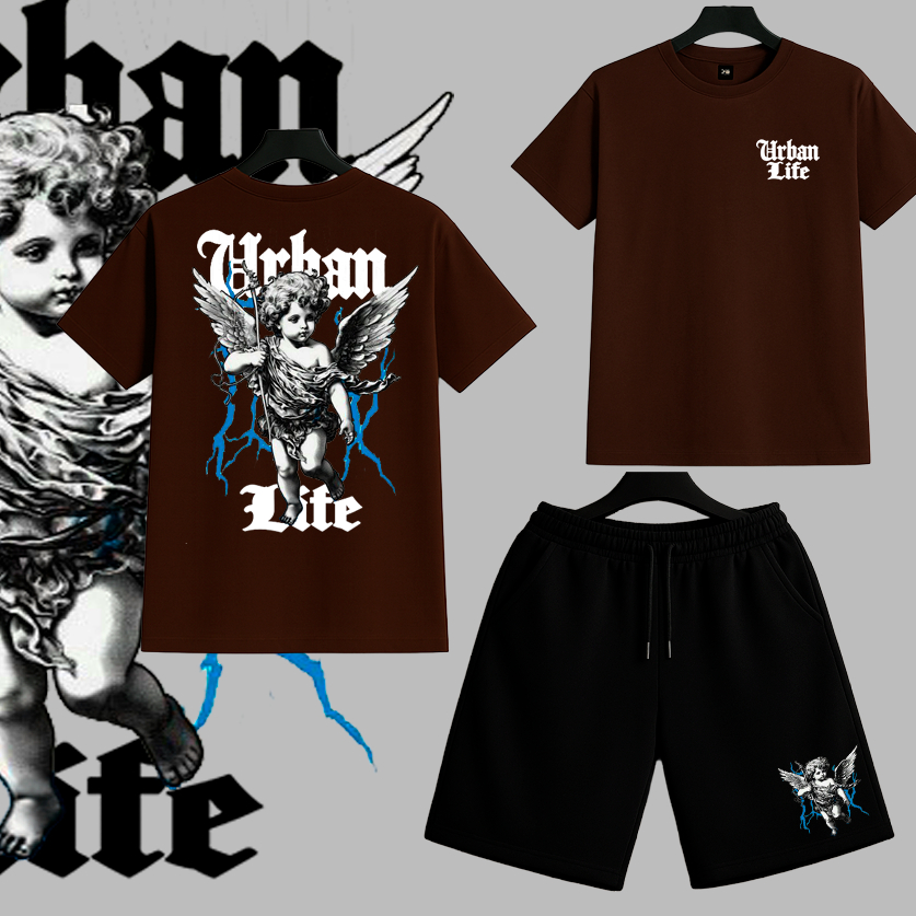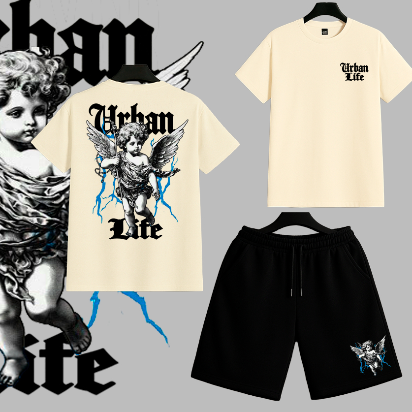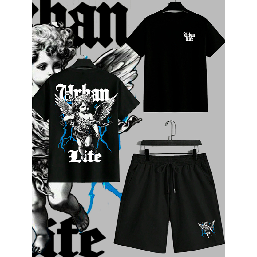Conjunto Camiseta 30.1 Algodão + Bermuda Moeltom Angel 03 streetwear Urbans Masculino