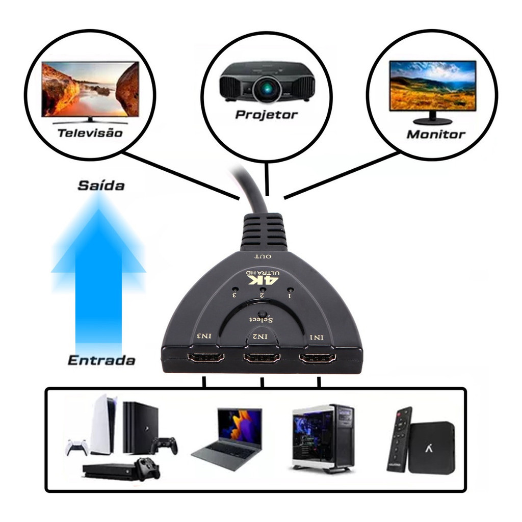 Switch Splitter Distribuidor Divisor Hdmi 3x1 Ultra Hd