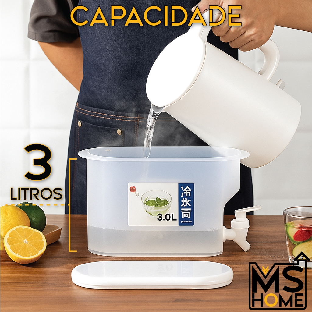 Suqueira Plastica Com Torneira Com tampa Para Geladeira Capacidade 3 Litros Para Agua Saborizada 3L