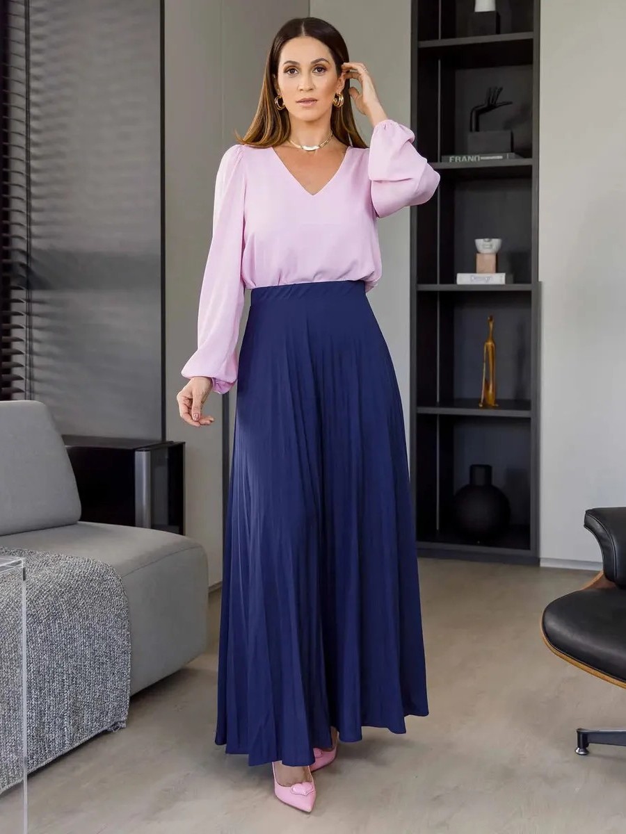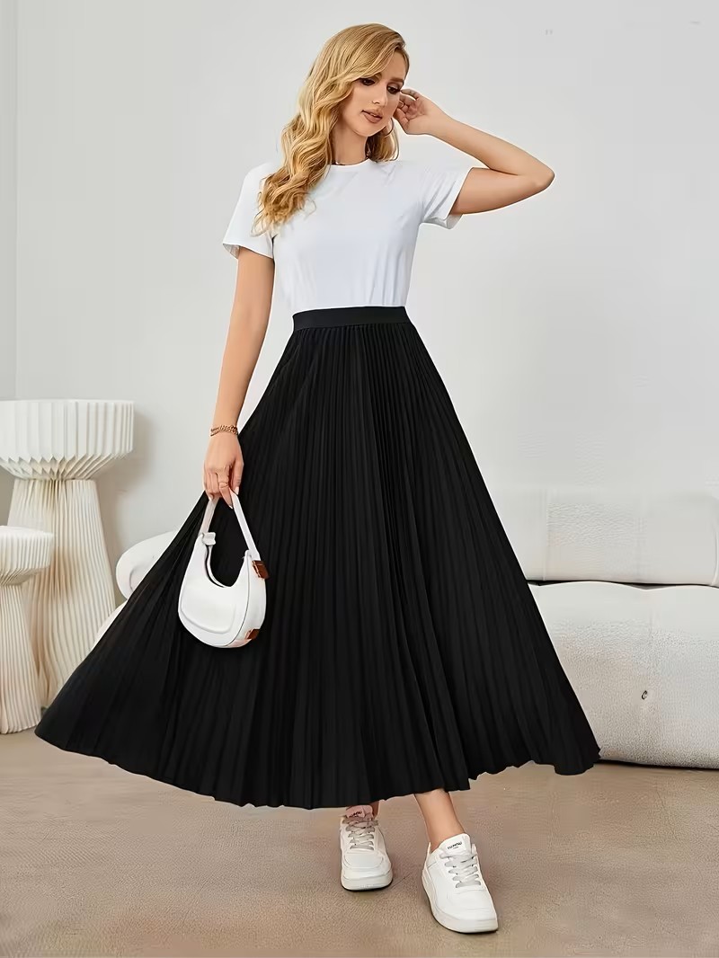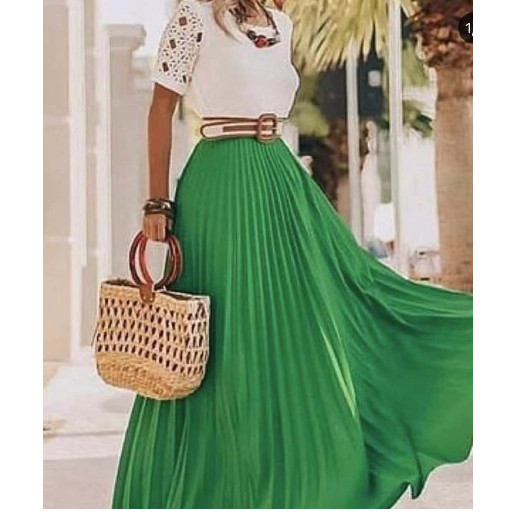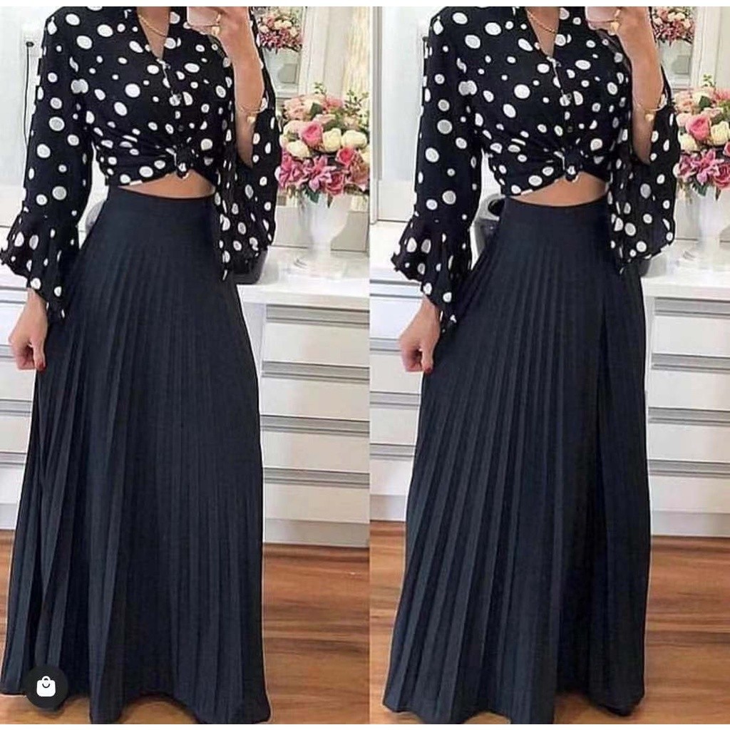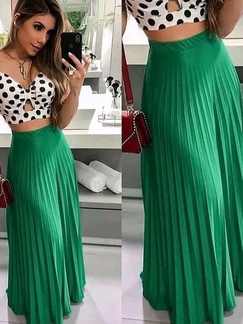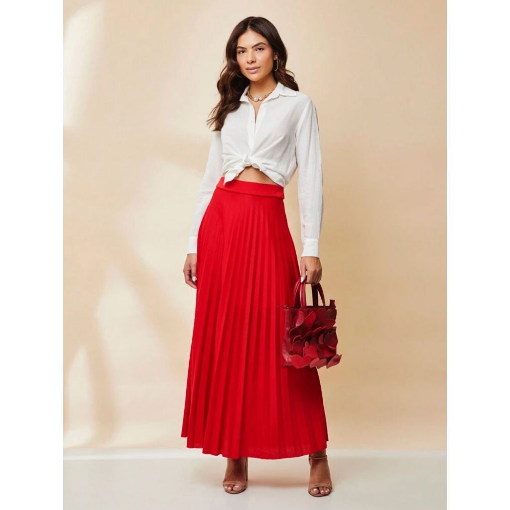Saia Plissada Longa Evangélica Elegante Forrada Lisa.