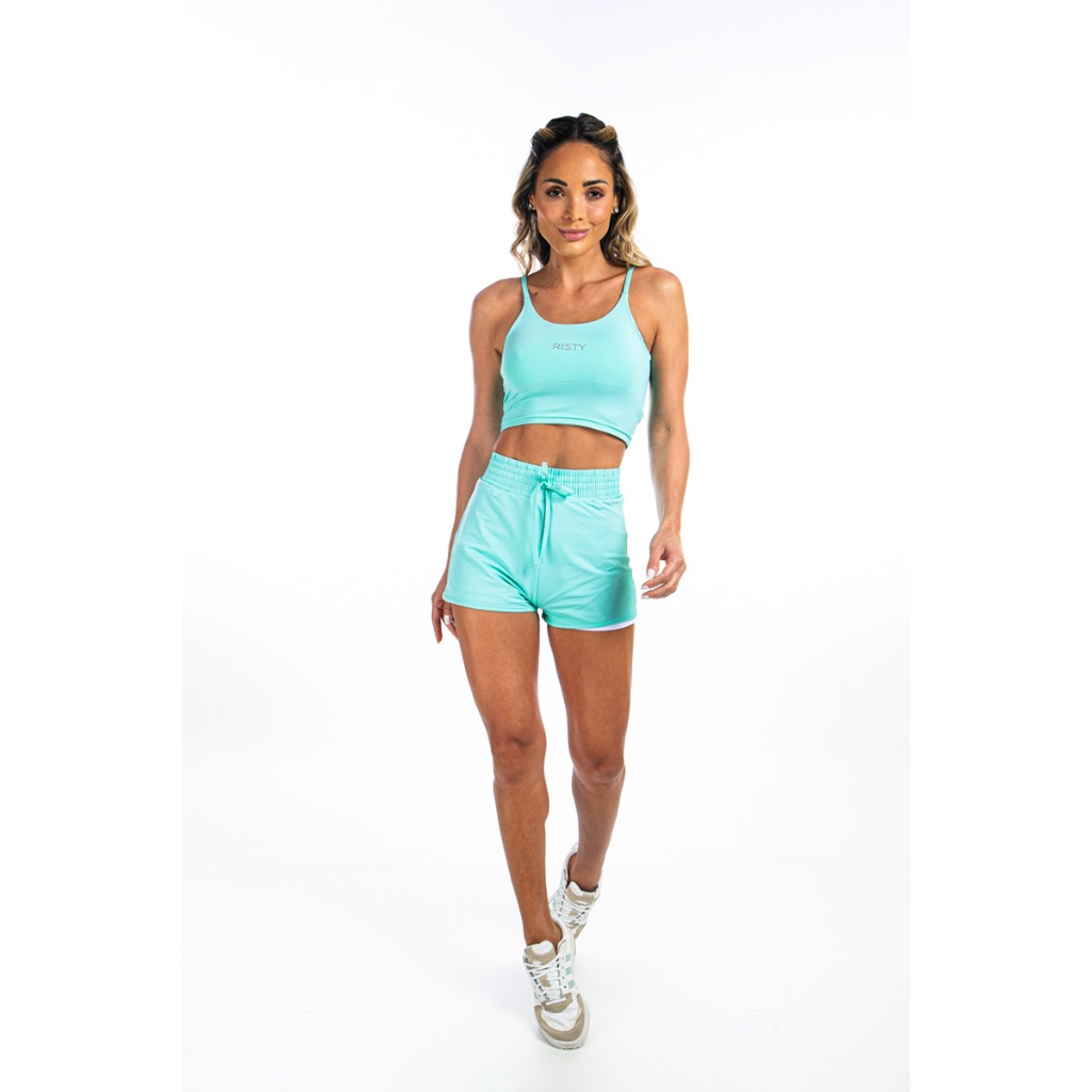 Conjunto Feminino Top Cropped e Shorts Fitness Academia Poliamida Zero Transpaência Safira